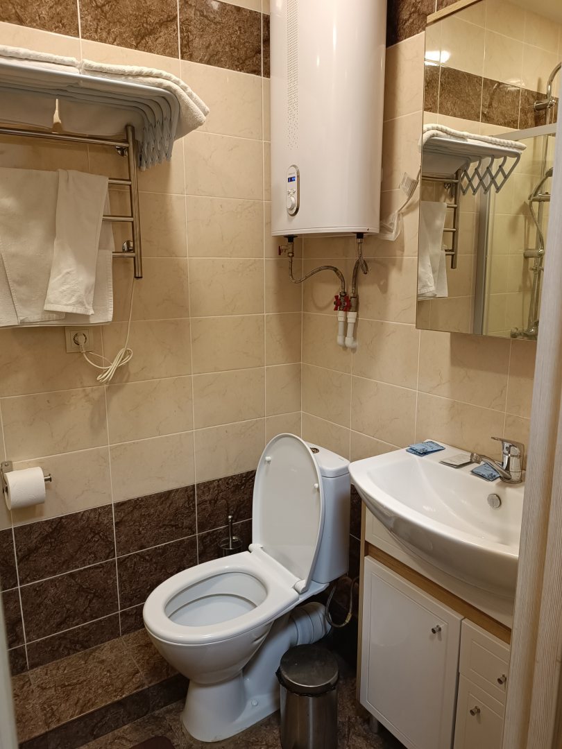 Заселение происходит дистанционно, в отеле мы были даже без остальных постояльцев до вечера где-то. Хорошая, чистая ванная со всем необходимым. Номер тоже чистый и с кондером. Договорились с админом на трехместный (изначально бронировали двухместный). Кровать была удобной, а кресло в особенности. Нам вдвоем там было удобно и почти вырубились за минуту, не хотели в свою кровать перебираться.