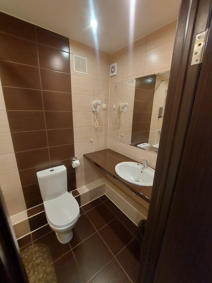Из недостатков: нет завтраков. Бизнес ланч, и то с 12, как мне сказали. Направили в кафе, через дорогу, но оно не понравилось. Ходила по столовкам, что в городе имеются, слава богу. Про микроволновку ни слова. Потом узнала в комнате горничной, что ли , и то попадала, что она закрыта была. Вообщем, разогреть негде, так скажу. Окна в моем номере, к сожалению, выходили на дорогу. Постель (подушка, одеяло), как будто запах пыли, не просушивается, давнее. Дверями хлопают, так как некотрые старые. То с самого раннего утра хлопают, то ночью. Никто о других не думает, чтобы дверь придержать. Повесить вывеску,, Дверями не хлопать, думаете о других,,)). Я так в одном отеле видела. Вода, странно в ванне лилась. Настроила на горячую, через какое то время холодная, потом наоборот. Но, нюансы везде могут быть. Как минусы так и плюсы.