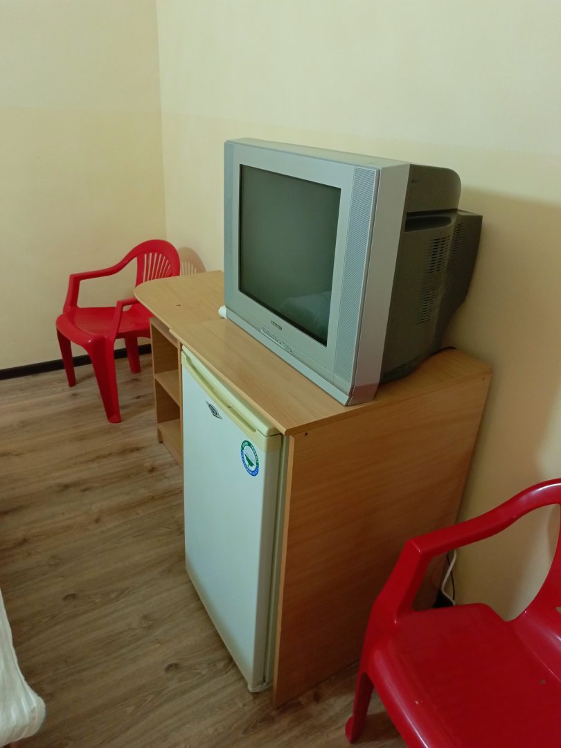 Плюсы: до моря реально 50 метров, есть кондиционер в номере, холодильник, чайник. Номер небольшой, но уютный. Для отдыха на море больше и не надо.
