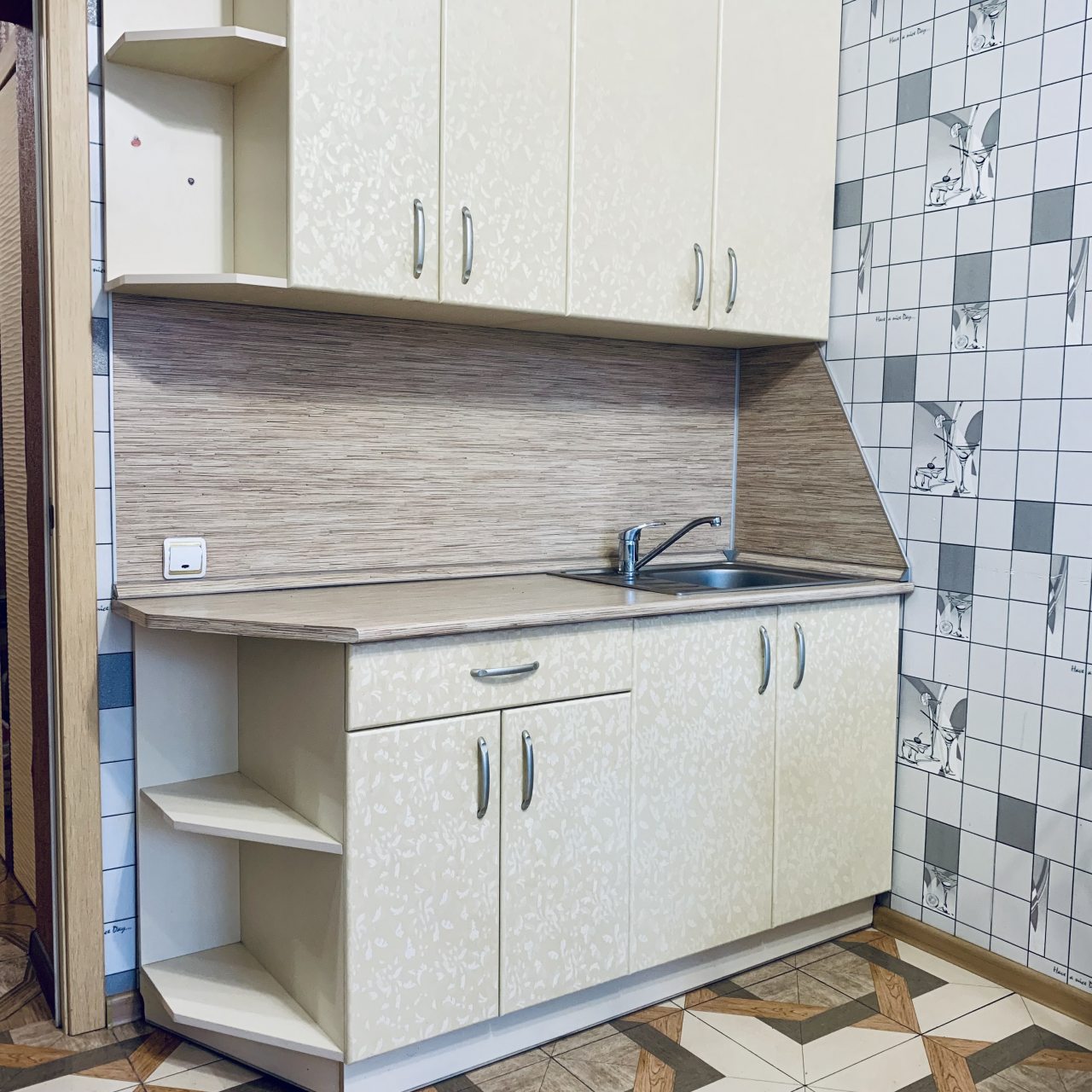 На кухне имеется все для приготовления вкусных домашних блюд, включая плиту с вытяжкой, духовой шкаф, СВЧ-печь и обеденную зону.
