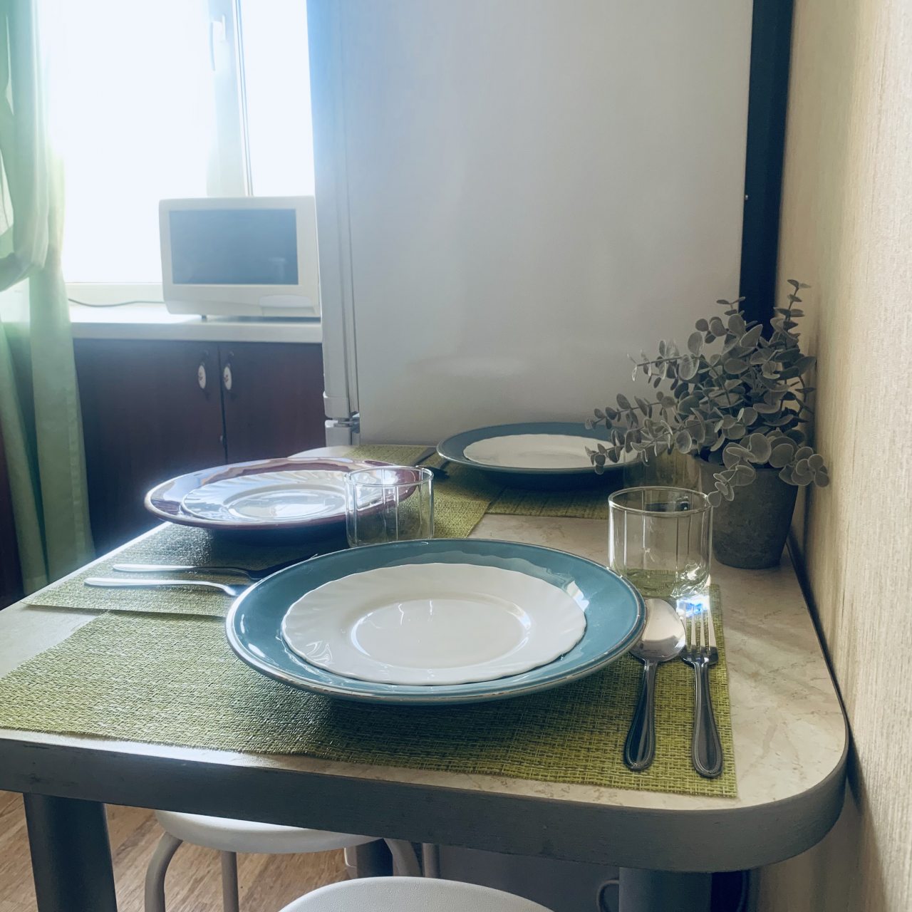На уютной кухне имеется все для готовки любимых напитков и блюд, включая чайник, плиту, духовой шкаф, СВЧ-печь и обеденную зону.