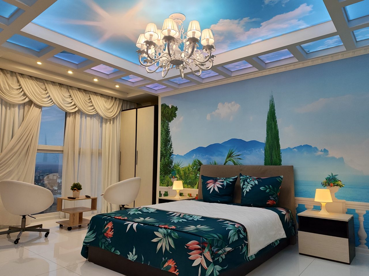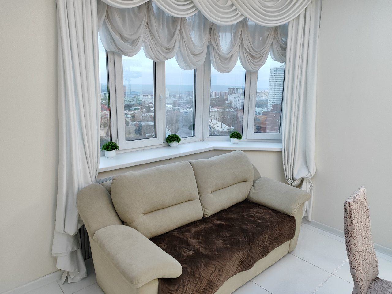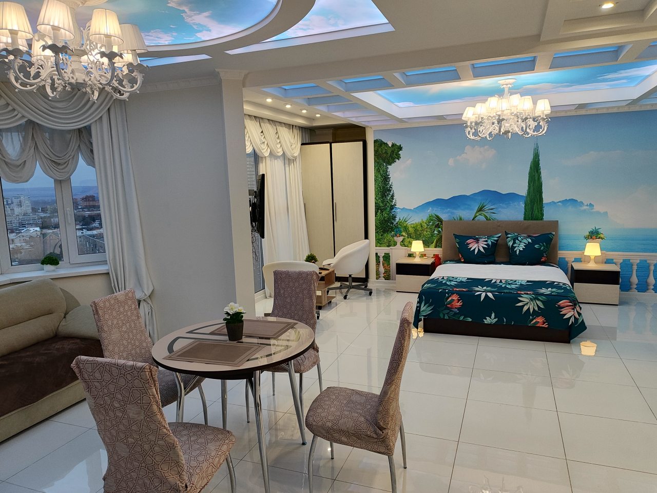 Для размещения предлагается просторная квартира, оснащённая всем необходимым для комфортного проживания: двуспальной кроватью со свежим бельём, прикроватными тумбочками, полкой для хранения различных вещей, шкафом, вешалкой, светильниками, телевизором для вечернего просмотра любимых фильмов. Бесплатный интернет поможет быть в курсе всех последних новостей и поддерживать связь по видео с родными и близкими. Санузел оснащён необходимой сантехникой, феном, освежителем воздуха, стиральной машиной, средствами гигиены, набором полотенец. Насладиться чашечкой кофе можно за столиком у окна с панорамным видом.