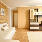 Для размещения гостей предоставляются уютные апартаменты с современным ремонтом. Они оснащены диваном, кроватью размера King-size, светильниками, телевидением, интернетом, рабочей зоной. Ванная комната оборудована стиральной машиной, средствами личной гигиены, комплектом полотенец, тапочками и феном.