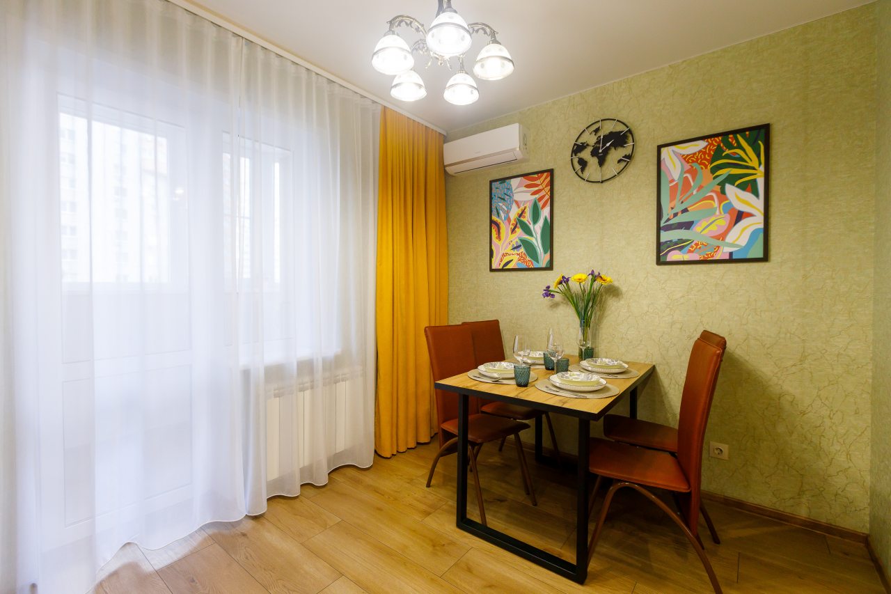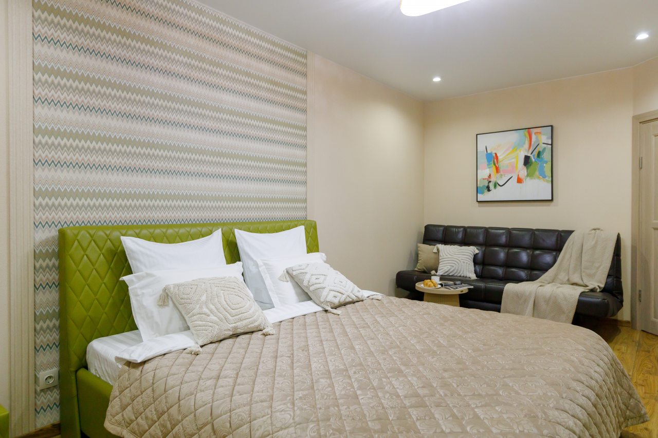 Интерьер лаконичный, чувствуется, что постарались сделать уютно. Заселение прошло быстро, без ожиданий и формальностей. Вечером приятно было сидеть у окна с чашкой чая, вид с высокого этажа добавлял настроения. Wi-Fi работал стабильно, что было важно для работы. Район показался безопасным даже поздно вечером. Чистота на высоте, никаких запахов или пыли.