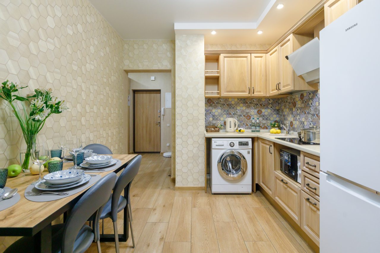 В квартире выполнен суперский ремонт. Он вроде и обычный, а вроде и нет - выглядело в итоге шикарно все. Поддерживается в чистоте, видно, что уборку проводят регулярно. Рядом совсем расположен Ботанический сад, гуляли там два вечера. нам очень понравился он. Стоимость по карману не ударила, плюс минус на это и рассчитывали. Заметили только, что метро далековато, но нам было все равно, так как были намашине.