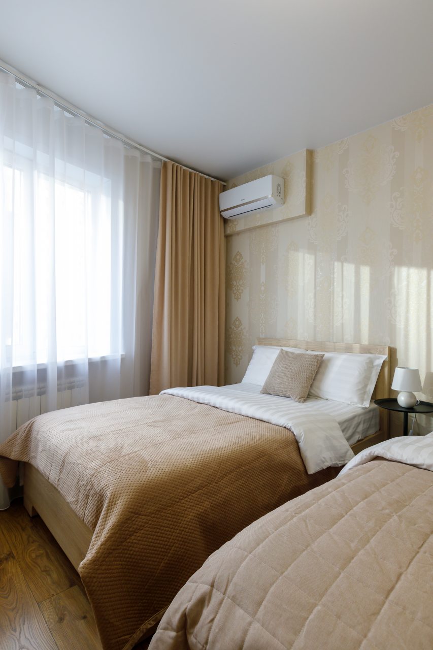 К услугам гостей стильные квартиры, обустроенные мягкой, приятной мебелью, просторным шкафом-купе, телевизором и кондиционером. С лоджии открывается красивый вид во внутренний дворик.