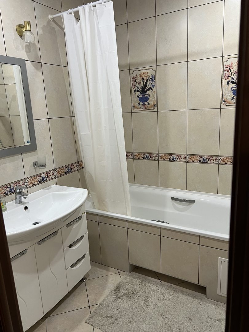 В квартире две комнаты, кухня, раздельный санузел. Все хорошо, удобные кровати и диван. Были семьей 4 человека, несколько дней. Все понравилось. Все в рабочем состоянии, холодильник, плита, чайник и так далее. Сантехника не течет, унитаз смывает, напор воды нормальный, в том числе без перебоев.