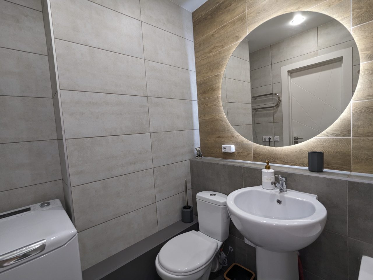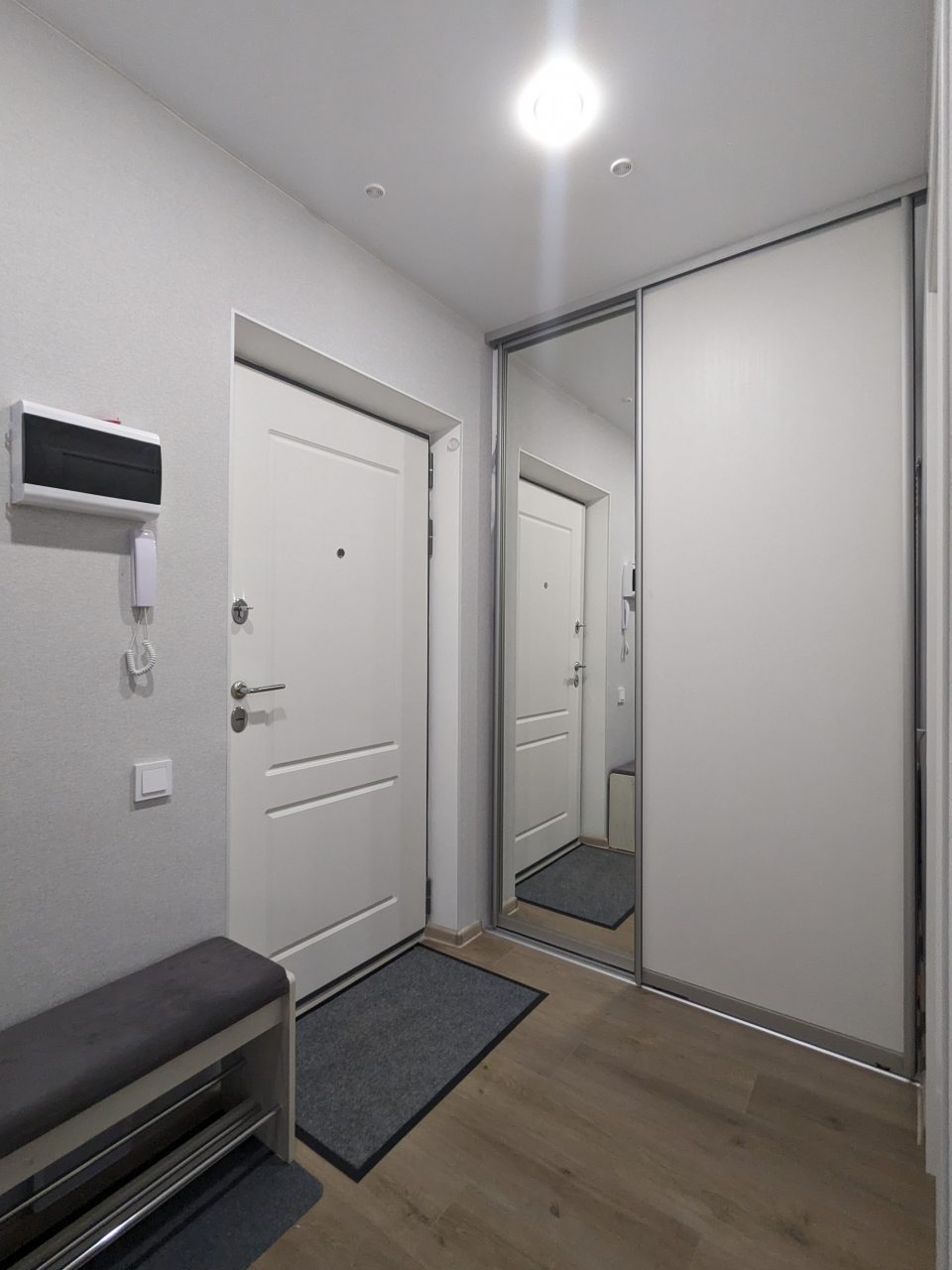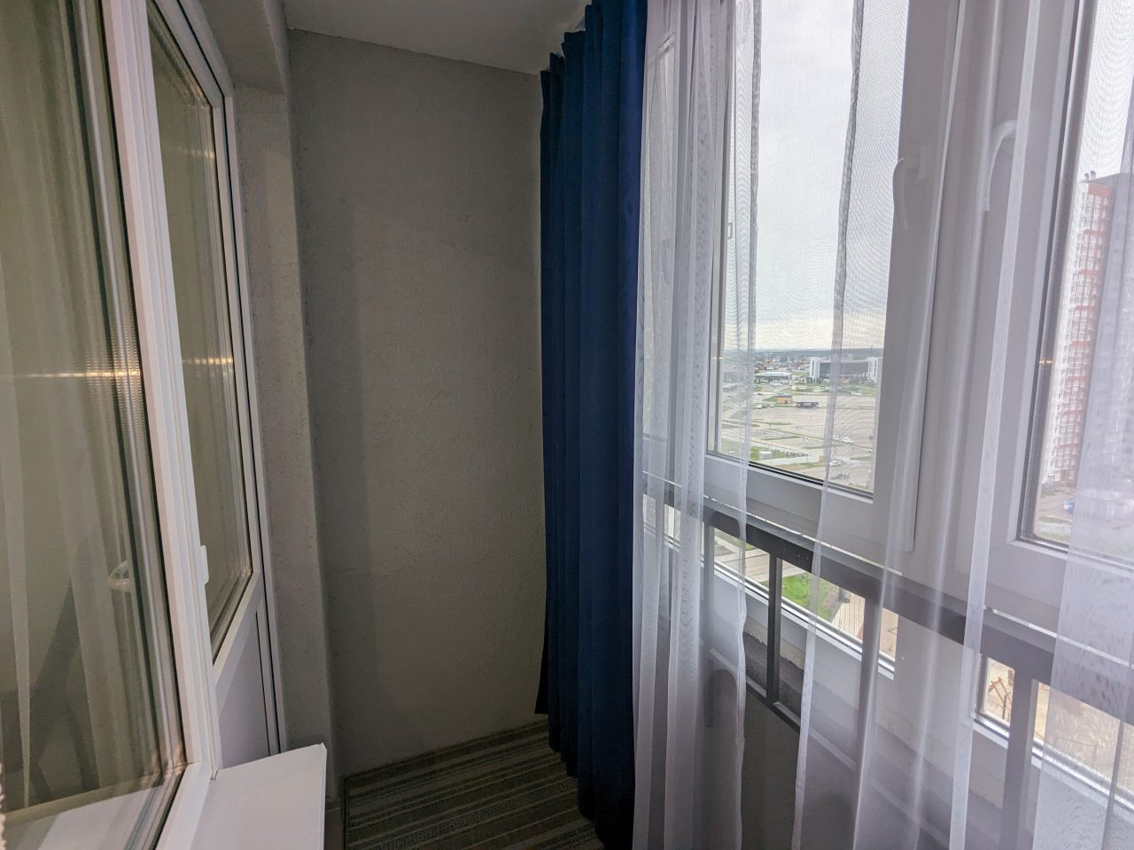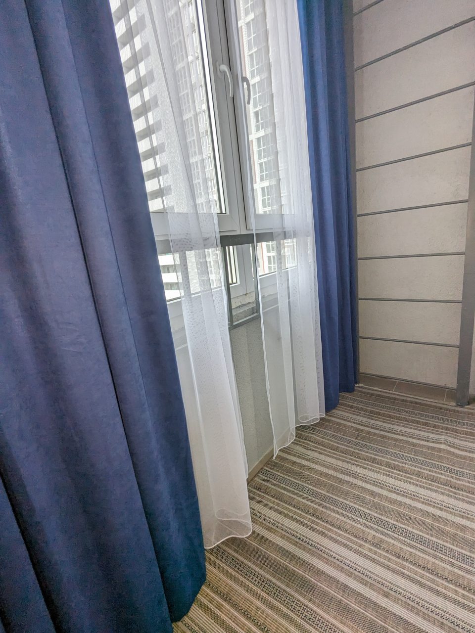 Внутри вас ожидает двуспальная кровать с удобным матрасом, мягкий раскладной диван, прикроватные тумбы, кондиционер, телевизор, затемненные шторы, вместительная гардеробная, ванная комната со стиральной машиной, гладильные принадлежности, пылесос, фен.