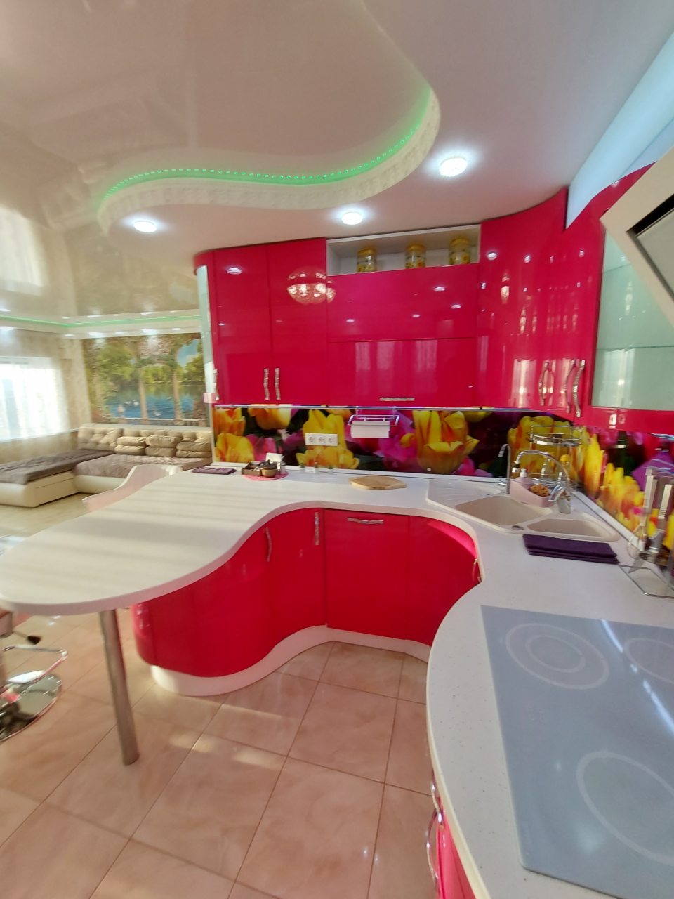 Размещались в квартире с предварительным бронированием. Интерьер понравился, вид из окна и правда хороший. В квартире можно размещаться большой компанией. Хотя мы ездили втроем. В ванной комнате понравилась гидромассажная ванна. Полотенца и некоторые средства гигиены нам предоставили. Кухня очень красивая с резной столешницей, смотрится невероятно! Обеденная зона есть. Вообще ремонт хороший здесь сделан и конечно кровать в спальне - это произведение искусства! По стоимости вышло недешево, но квартира упакована!