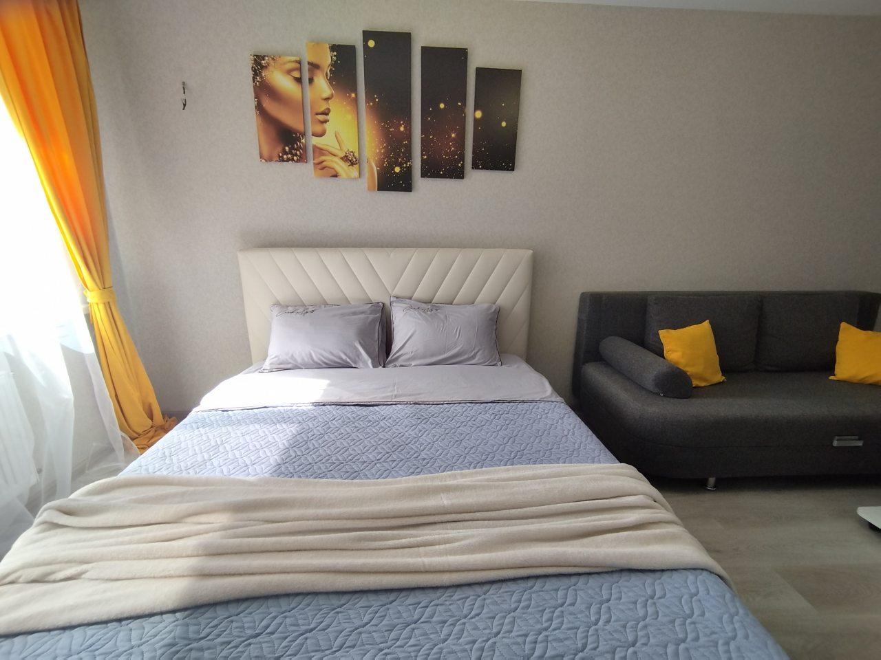 Классный вариант для размещения, который мы для себя нашли. Места хватило для меня и мужа. Думаю, что для семьи с одним ребенком тоже будет отлично. Очень удобная мебель и с хорошим состоянием, без пятен и дырок. Постельное белье свежее, а подушки и матрас удобные. Здесь нам спалось даже лучше, чем в собственной квартире)). Локация удобная, неподалеку магазины, остановка и парк.