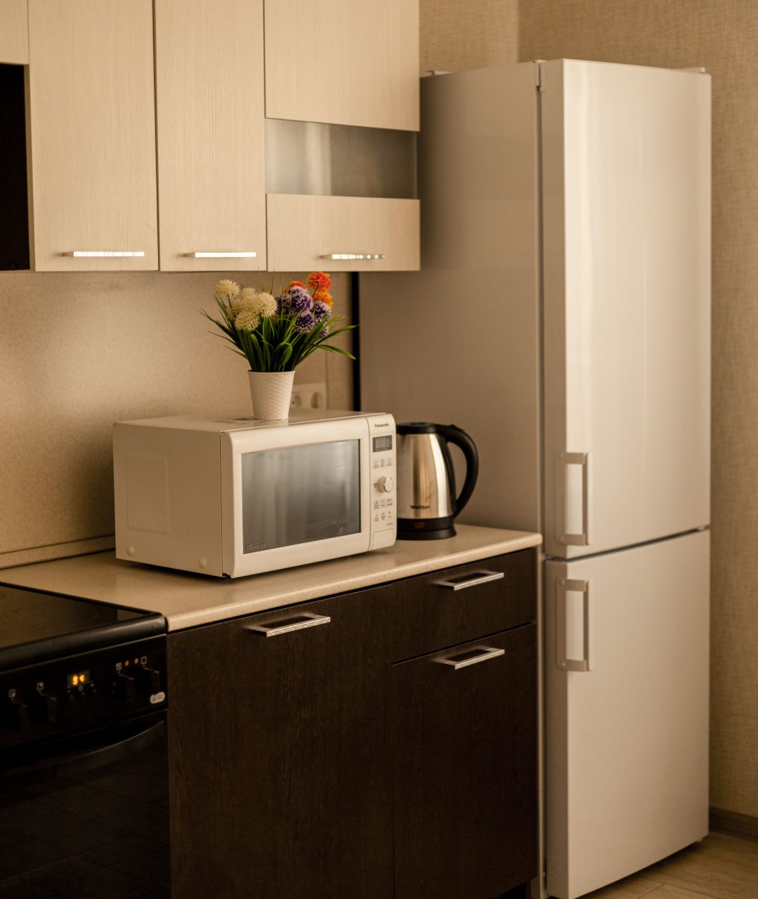 На уютной кухне будет приятно готовить домашние блюда и напитки, поскольку в наличии как обеденная зона, так и плита, холодильник, электрический чайник, микроволновая печь, духовой шкаф.
