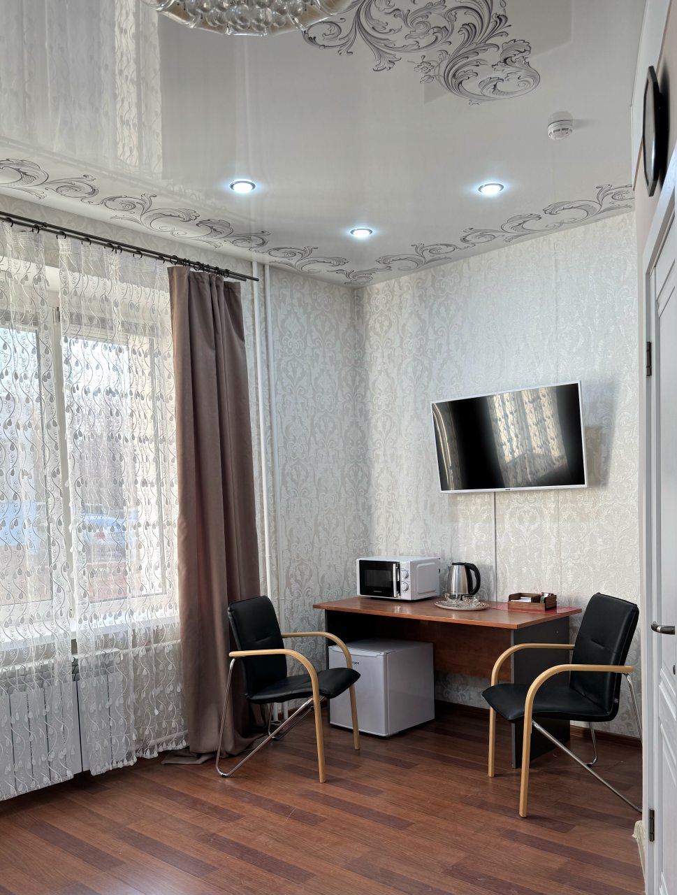 Студия укомплектована всем необходимым для комфортабельного проживания и отдыха, например: двуспальной кроватью с чистым постельным бельем, прикроватной мебелью, шкафом, письменным столом, wi-fi, телевизором. Собственная ванная комната оборудована сантехникой и гигиеническими средствами.