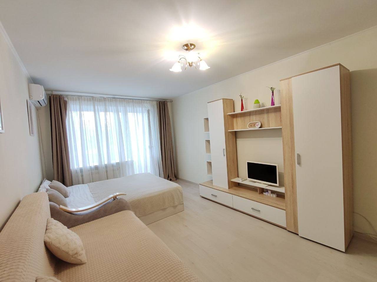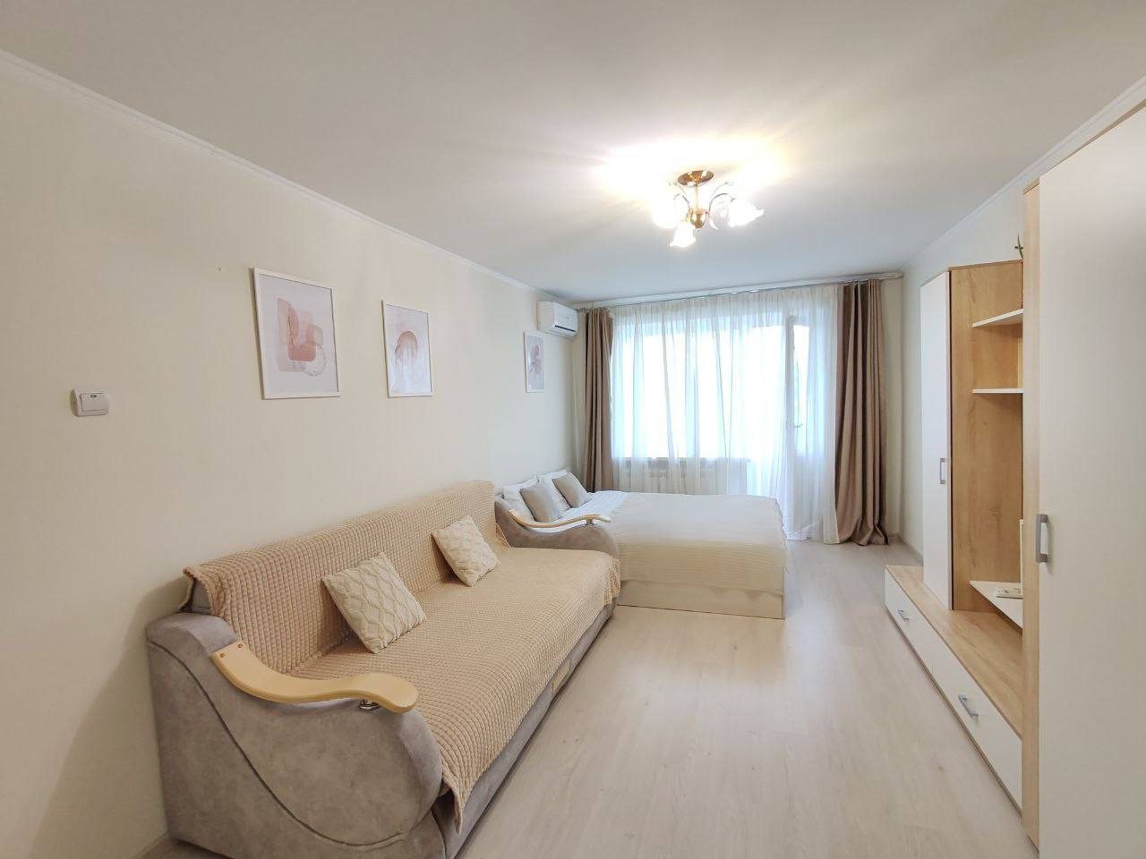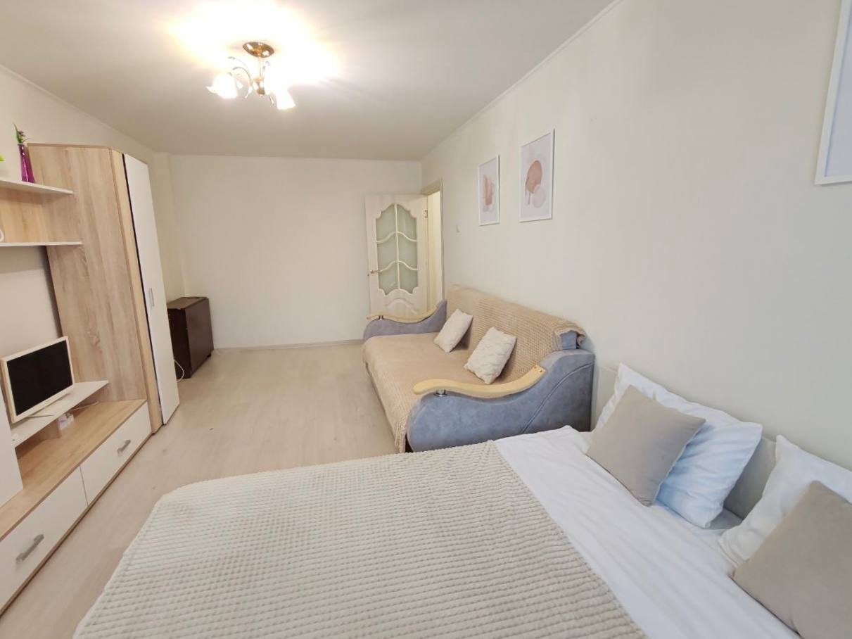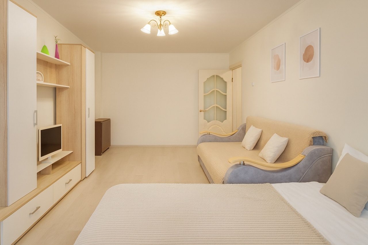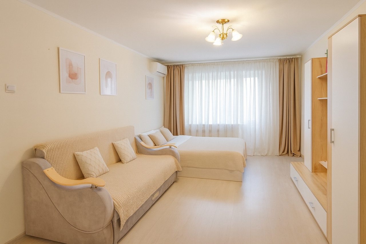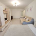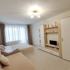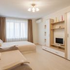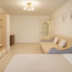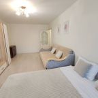 Для размещения гостей предоставляются комфортабельные апартаменты с современным ремонтом и дизайном. Благодаря такие элементам декора, как плотные шторы для комфортного сна, настенные картины, вазы создается уютная атмосфера. Установлены телевизор, раскладной диван, кровать. В ванной комнате есть стиральная машина.