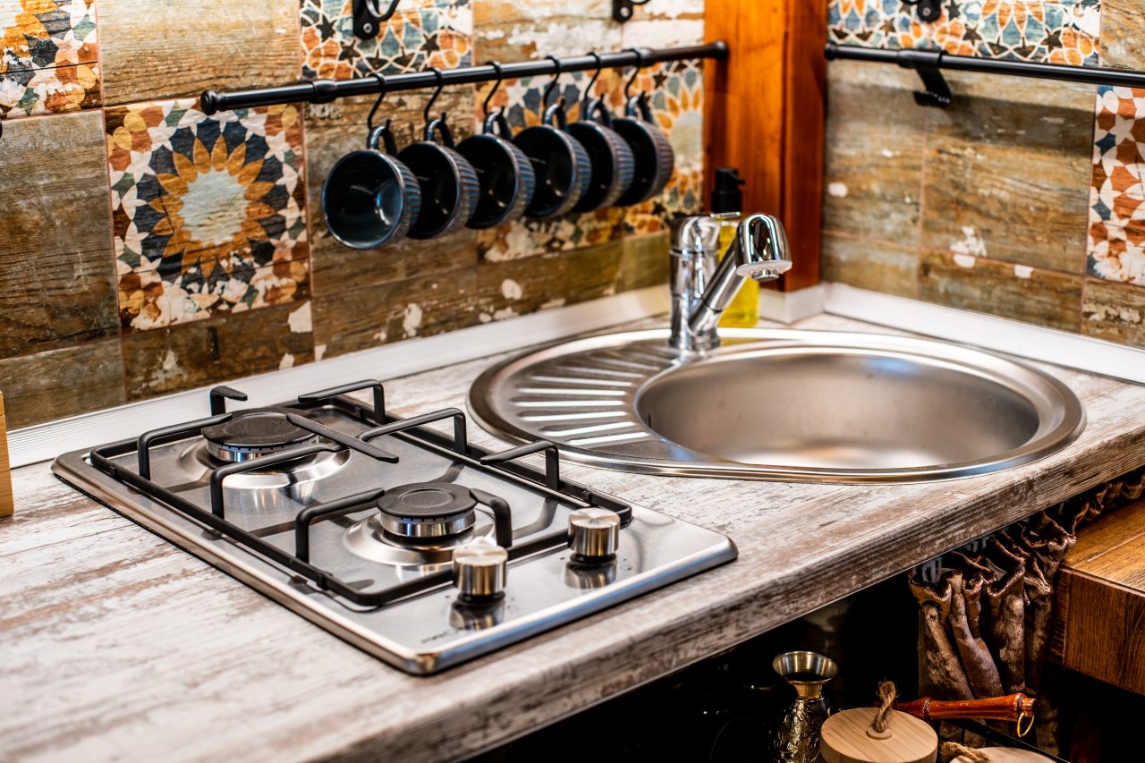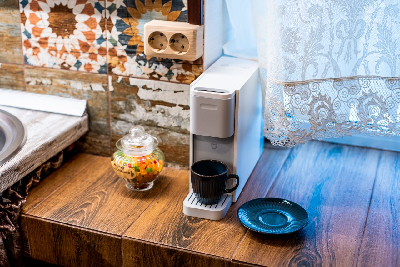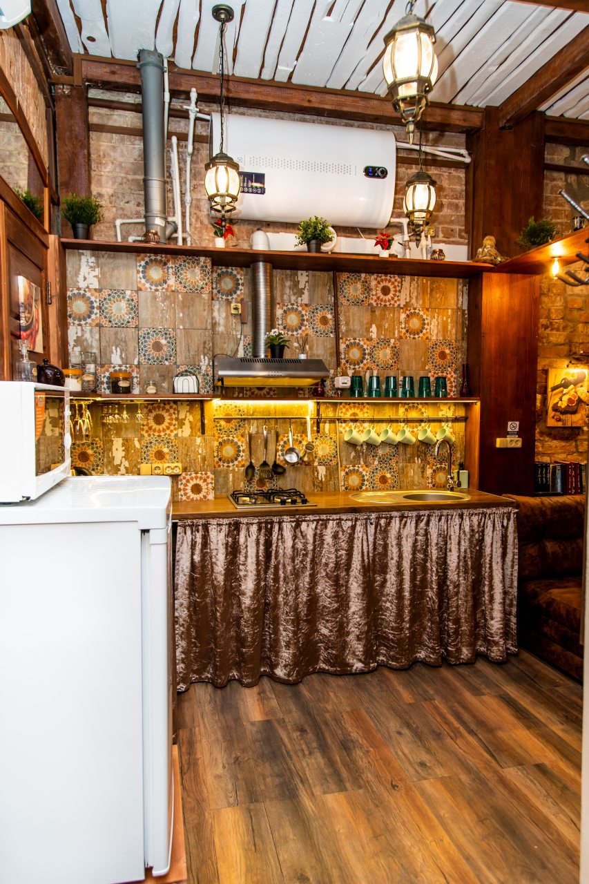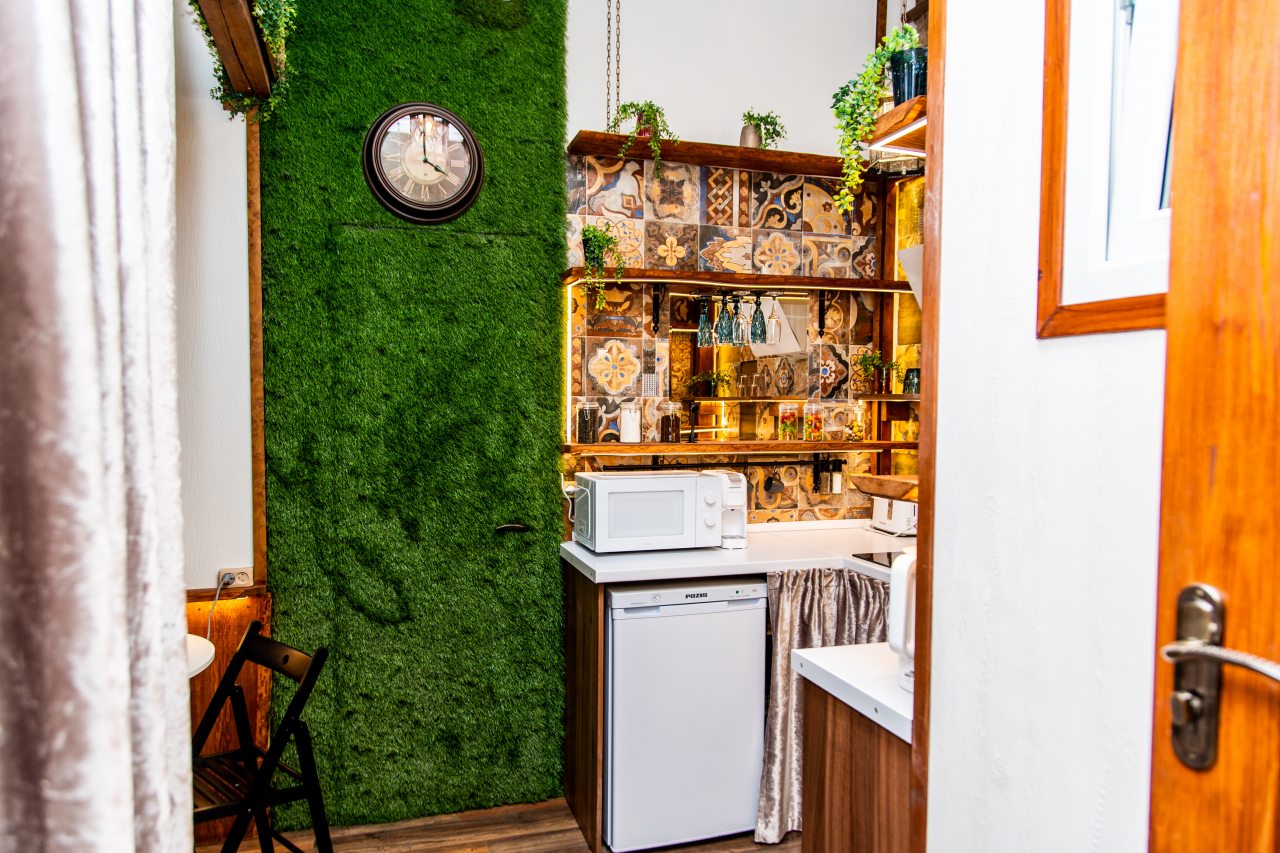 В гостевом доме имеется кухня, в которой располагаются холодильник, микроволновая печь и другие нужные принадлежности для приготовления еды. Неподалеку располагаются кафе и магазин продуктов питания.