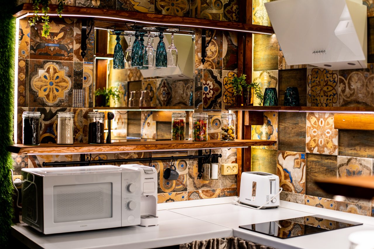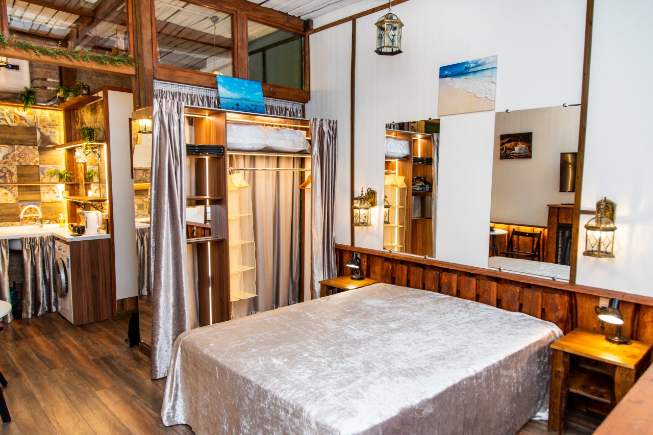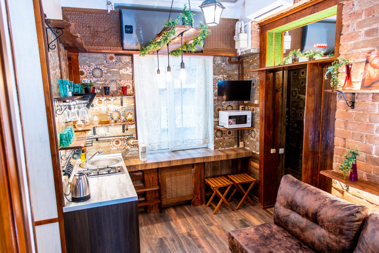 Шикарные апартаменты с интересным дизайном и хорошим ремонтом. Для проживания здесь есть всё, что нужно! Техника и мебель в отличном состоянии, кровать удобная. Также порадовало само расположение. Рядом есть немало мест, где можно и прогуляться и перекусить! Очень рады, что выбрали именно эти апартаменты!