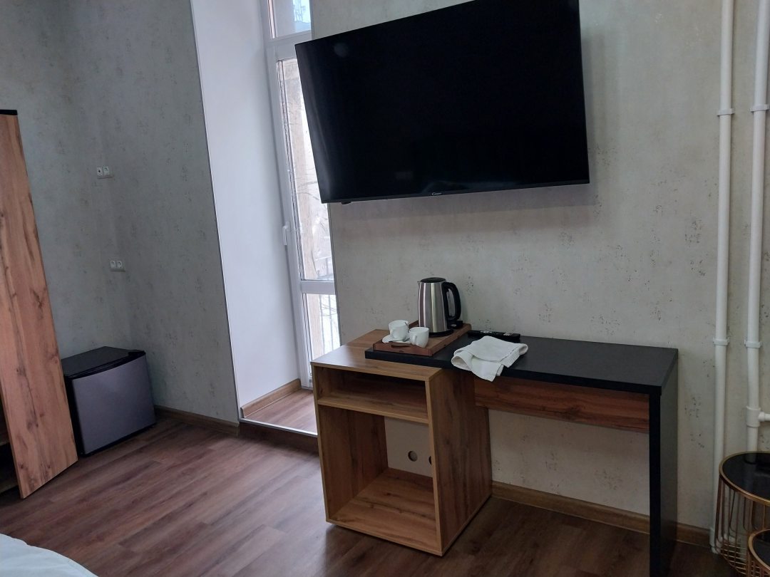 Из недостатков: в номерах чисто и достаточно уютно, но в ванной комнате нет полотенцесушителя, нижнее бельё и купальники совсем не сохнут, но их даже не на что повесить. Телевизор работает только от интернета, который постоянно висит , нет простой антенны на федеральные каналы, посмотреть даже новости практически невозможно , а в целом нам очень всё понравилось.
