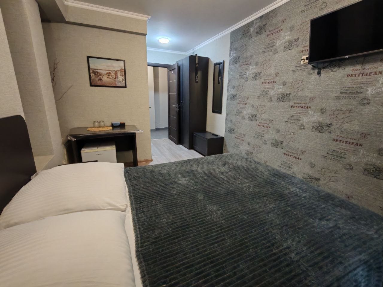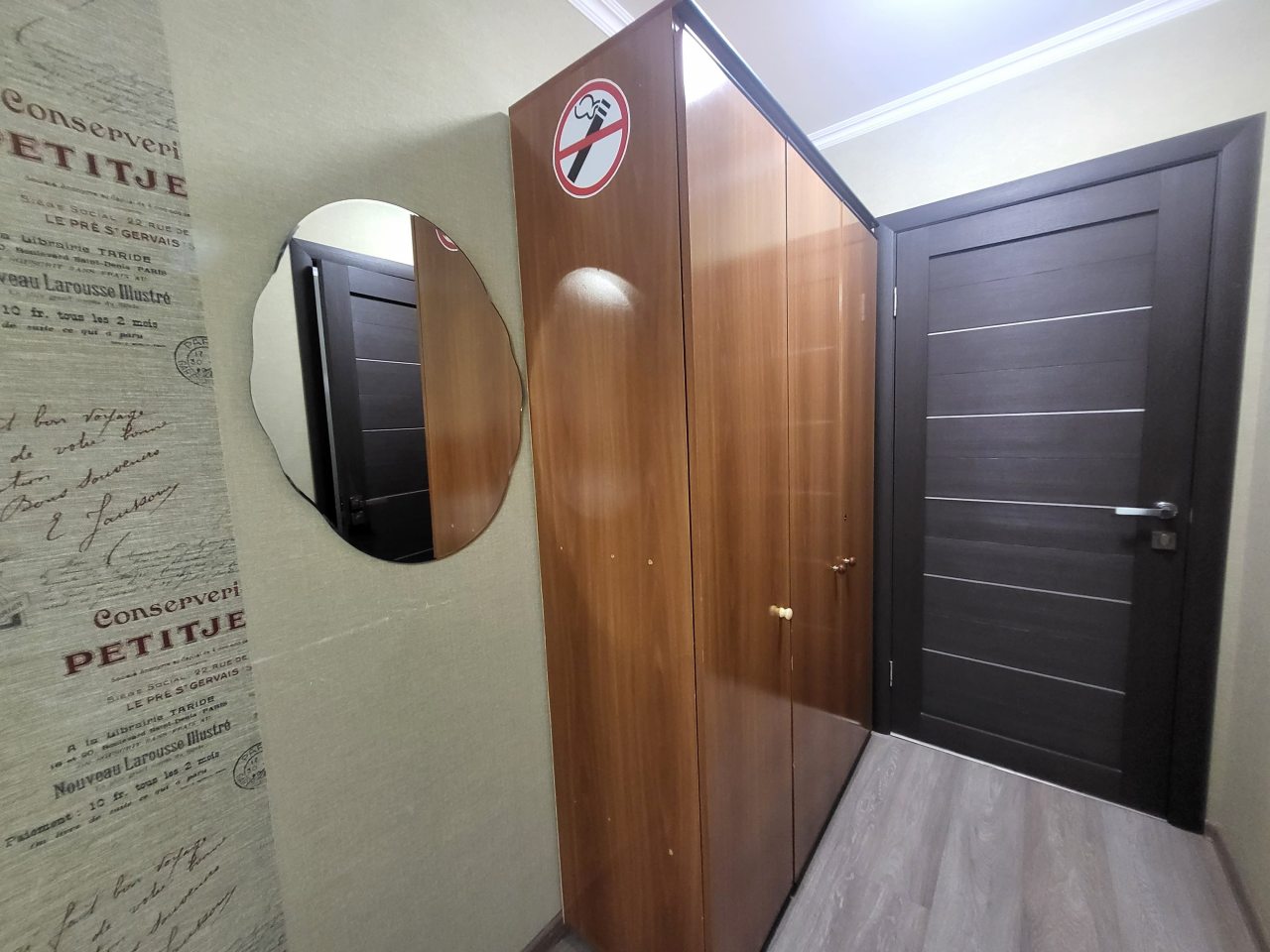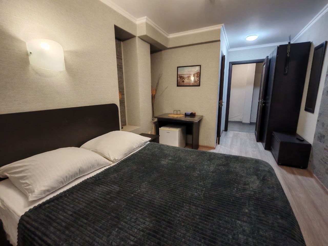 Отель удобно расположен в жилом доме ,рядом остановки общественного транспорта ,близость магазинов ,вежливый персонал ,есть кухня с посудой с плитой ,микроволновкой ,что очень удобно ,имеется холодильник ,в общем всё устраивает ,и стоимость проживания ,рекомендуем .
