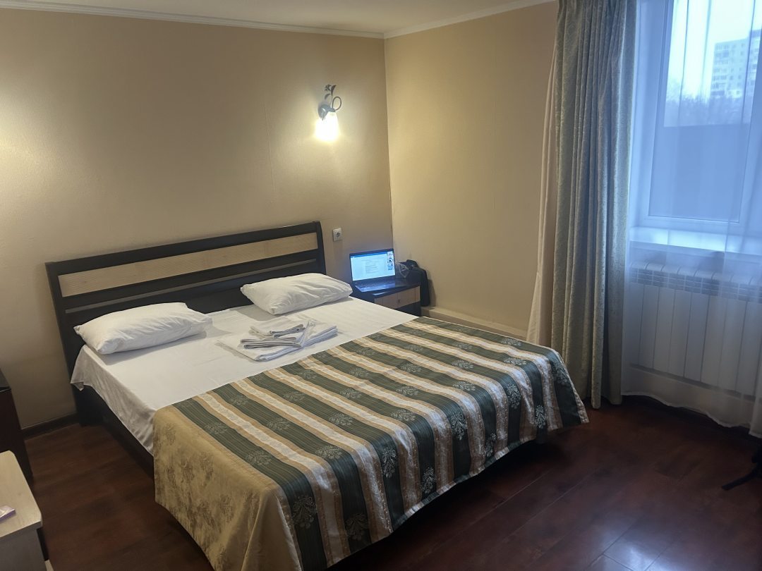 Из недостатков: шум с проезжей части города, вид из окна, нет сетки на окне. Уставший номер, требует ремонта.