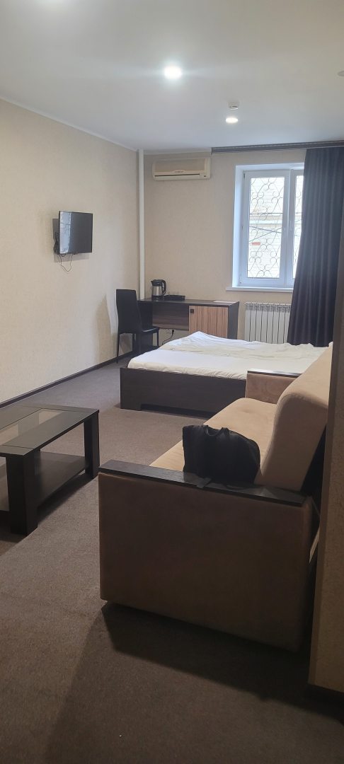 Гостиница расположена близко к пешеходной улице Ленинградской, как я понимаю, это исторический центр. Номер большой, кровать огромная, удобная. Мебель и санузел немного уставшие, но для 3 звёзд вполне приемлемо. Завтрак очень понравился, каша вкусная и йогурты. В номере чайник, чашки и пакетики чая, диспансер с водой на этаже, мы вечером чай попили, очень удобно. Также нам выдали шампунь и наборы щетка+паста. В целом оказалось лучше, чем я ожидала.