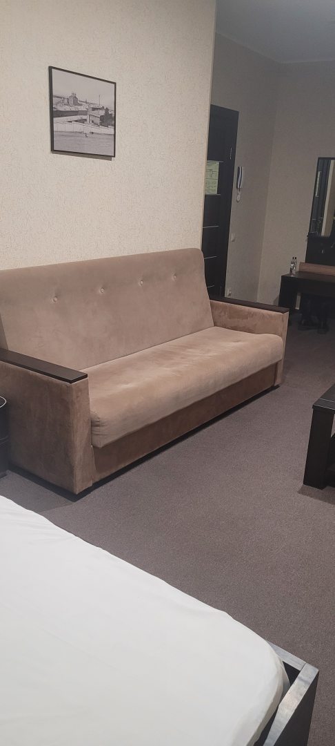 Из недостатков: очень жарко, несмотря на открытое окно. Регулировать батарею нет возможности, хотя байпасс есть. Диван слегка ободранный, санузел тоже в довольно пошарпанном состоянии. Найти оказалось проблематично, т к требуется свернуть во дворы с ул. Фрунзе. Хорошо бы предусмотреть навигацию с Фрунзе и вывеску поярче.