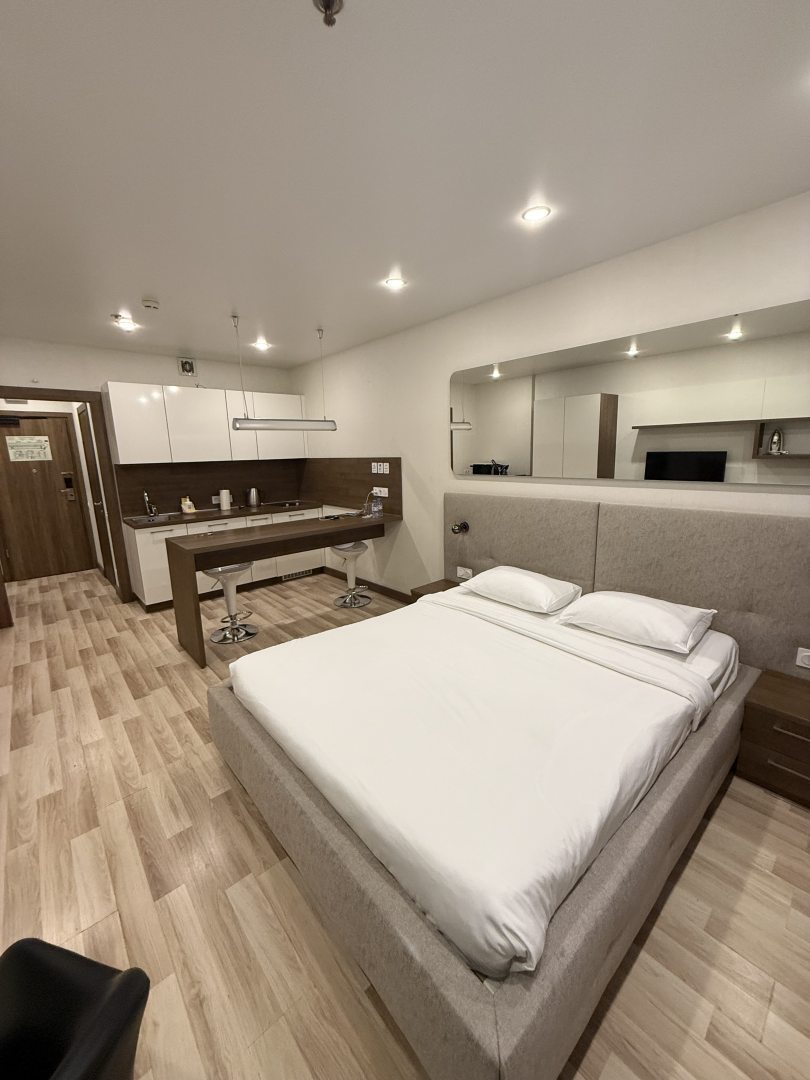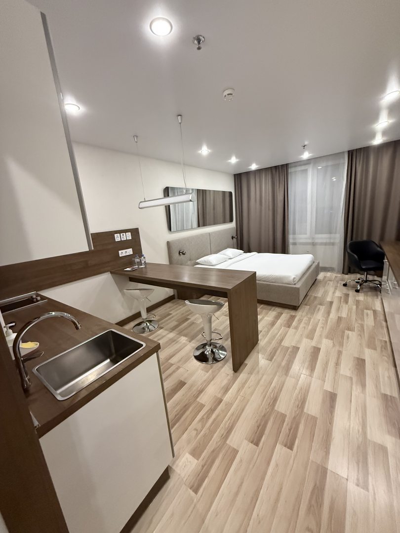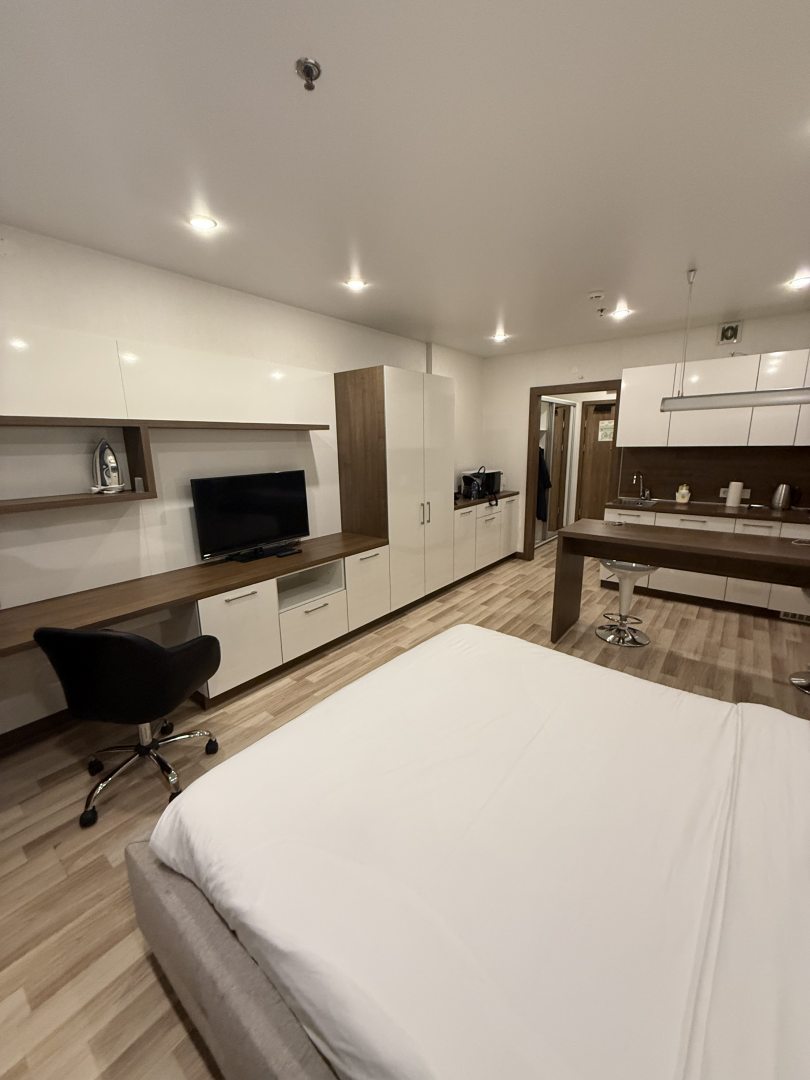 Этаж 10. В номере шторка в ванную грязная, полотенце для ног грязное, благодарю девушек горничных, которые сразу всё исправили и заменили,им отдельно респект! Поэтому и Хорошо в этот раз...Пол при входе расцарапан- это конечно не критично.