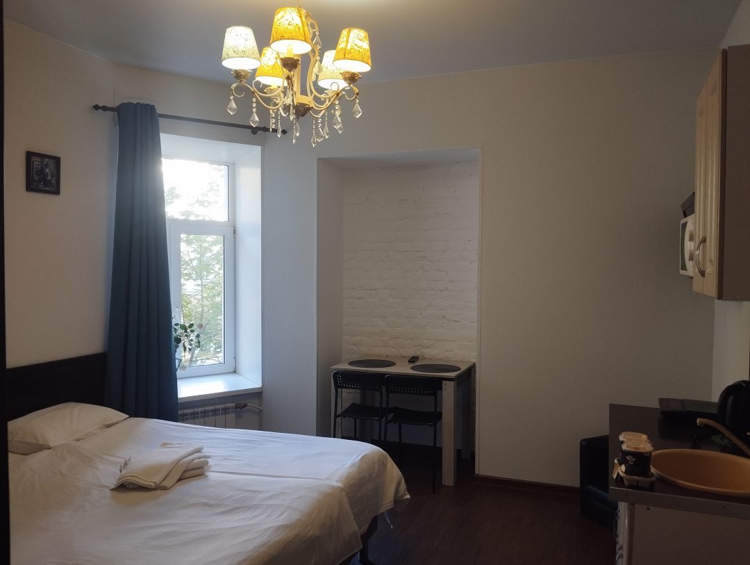 Останавливаемся в этом отеле не в первый раз. Нам нравится дистанционное заселение без необходимости с кем-то контактировать или заполнять бумаги на ресепшн. Кодовый замок так же удобен с точки зрения выселения, если это происходит раньше оплаченного времени. Просто вышли, дверь закрыли и всё. Ночью, рано утром - хоть в 5 утра поезд - не важно. В некоторых бюджетных отелях есть приходящий администратор, то есть нужно как-то подстраивать время заезда и выезда под него, здесь такой проблемы нет. Кодовые замки позволяют ориентироваться только на себя и свои планы. Расположение отличное - в 5 минутах от Садовой. С поиском отеля сложности не возникает (и не возникло изначально), высылают достаточно подробную фото-инструкцию, как найти парадную. Сам номер оборудован мини-кухней, кровать неплохая. Соседей мы ни разу не слышали, никто нас не беспокоил. Правда, отель немного "уставший" в плане состояния мебели и номеров. Но никто и не позиционирует это, как 5 звёзд. Соотношение цены и качества, так скажем, нормальное. Если речь идёт о ценах в пределе 1500-2000 руб. (в зависимости от уровня номера). За цены выше можно найти условия лучше, но тут вопрос в приоритетах. Если важен дистант, центр, и у вас ограничен бюджет - а в Александрии в этот период скидка - этот отель можно рассматривать. К персоналу, хоть и удалённому, претензий нет. Возникают вопросы - оперативно выходят на связь. Рядом хватает и кафе, и магазинов. Да, некоторые минусы есть, но для нас есть и плюсы, которые их компенсируют.