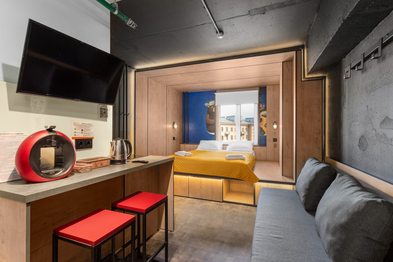 Приехали повидать Санкт-Петербург. Выбирали апартаменты долго и скрупулёзно, но, наткнувшись на эти, все бросили и забронировали. Нам повезло, что было свободно. Интерьер выполнен в очень интересном стиле, не бывала в таких раньше. Внутри была вся мебель и техника в хорошем состоянии, ремонт поддерживается на высоте. Все чистенькое и свеженькое. Когда заселялись, был легкий армат бытовой химии, но он выветрился быстро и с самого начала не приносил дискомфорта. Отличное место).