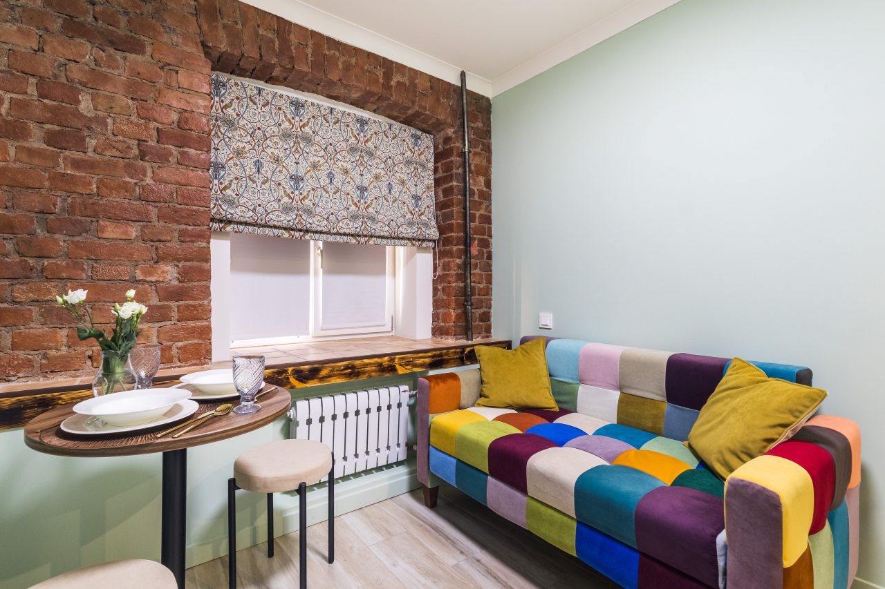 Жила одна, осталась вполне всем довольна. Квартирка небольшая, но мне было очень комфортно. В таком маленько помещении есть все необходимое. Кровать на втором ярусе прикольная.