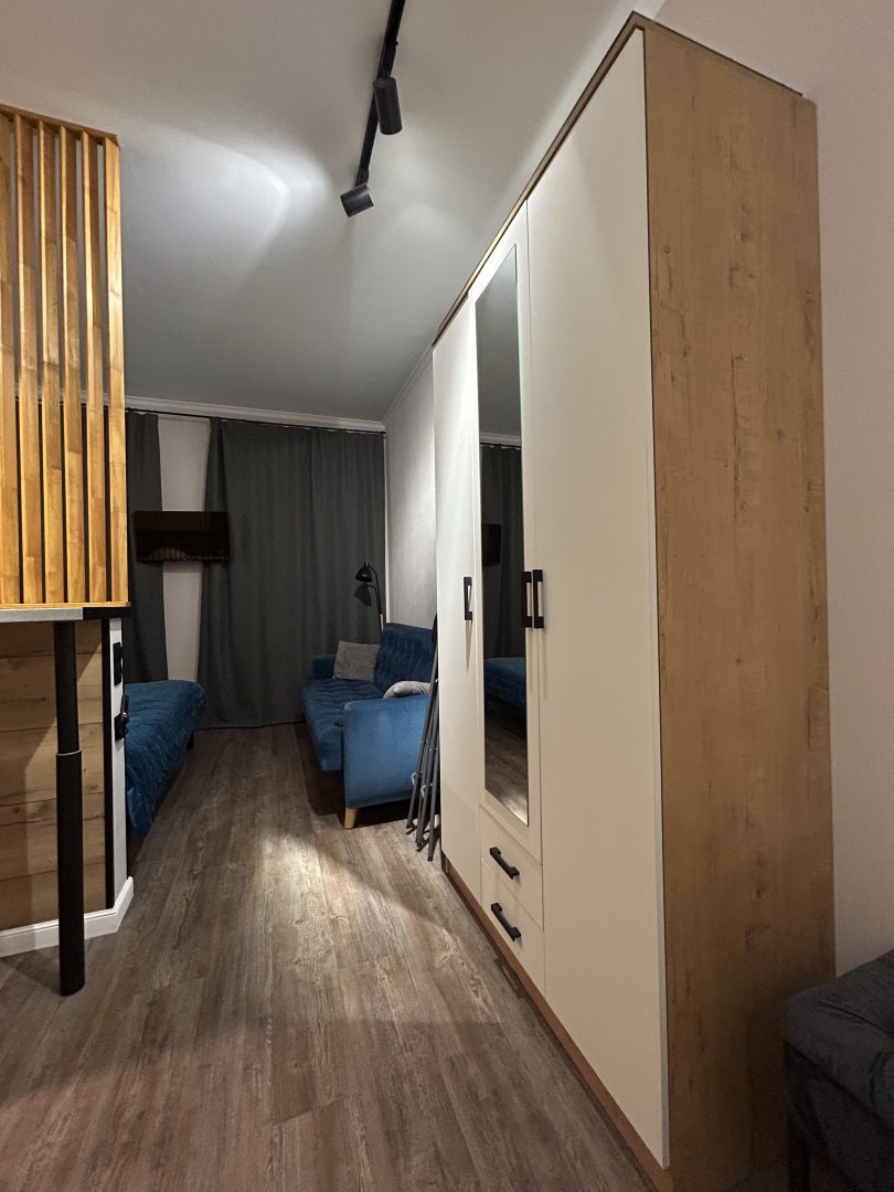 Квартирка-студия. Небольшая. Точнее, компактная, так как очень продумана планировка, и за счет этого всё удалось вместить, что нужно. Вдвоем нам не было тесно. Тем более, что в основном только ночевали, да утром на часик-другой забегали между экскурсиями. Расположение – удобнее трудно придумать!