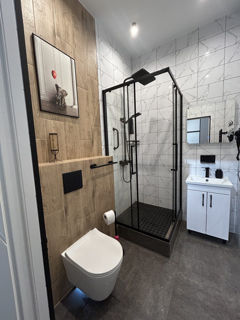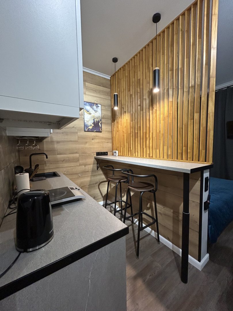 К размещению гостям города представлены современные квартиры-студии, в которых установлена качественная и красивая мебель. В жаркий день можно воспользоваться индивидуальной системой кондиционирования, а перед сном посмотреть любимый кинофильм. Ванная оборудована душем, туалетом и раковиной.