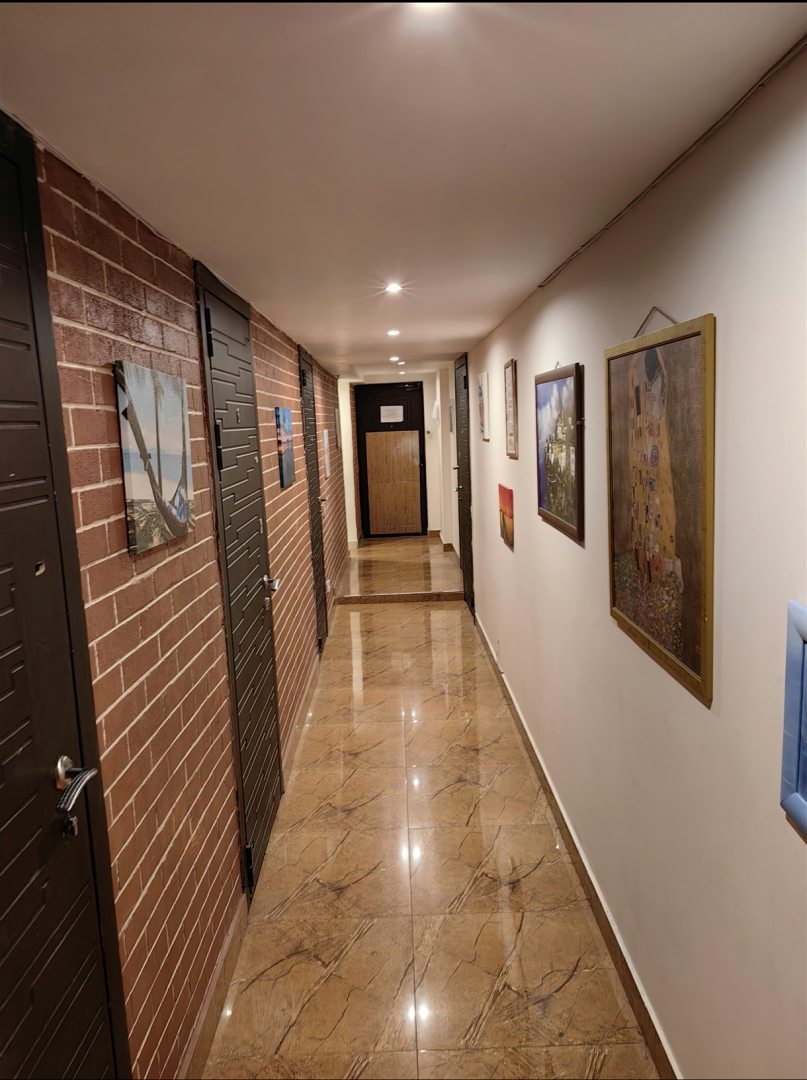 Из недостатков: хотелось бы хоть какой-то чистоты в подъезде и на лестнице. Хозяева отеля тоже могут влиять на этот момент.