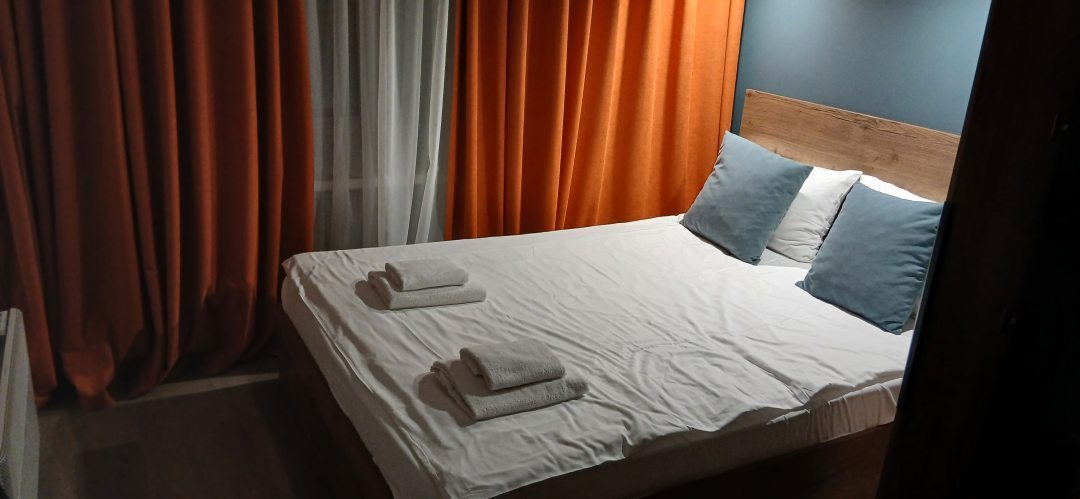 Отдохнуть после насыщенного дня туристы смогут в подготовленных уютных апартаментах. В них выполнен свежий современный ремонт в теплых оттенках. Имеется приятная мягкая мебель, телевизор, а также собственная ванная комната с гигиеническими принадлежностями.