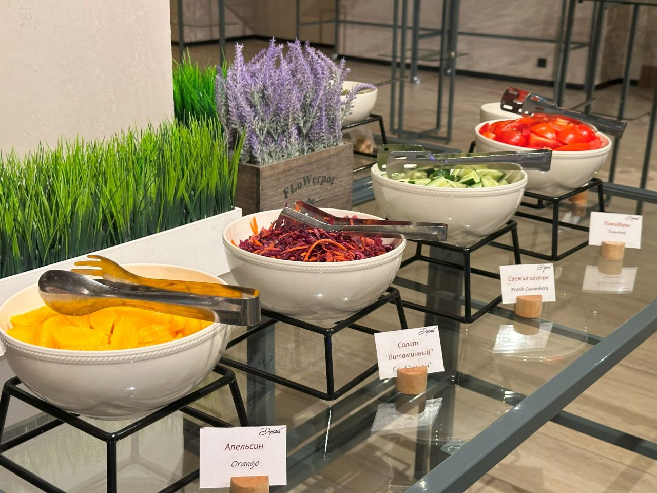 Комплектация кухонной зоны может варьироваться в зависимости от выбранного номера. Также в апарт-отеле работает ресторан, где можно насладиться вкусными блюдами и напитками.
