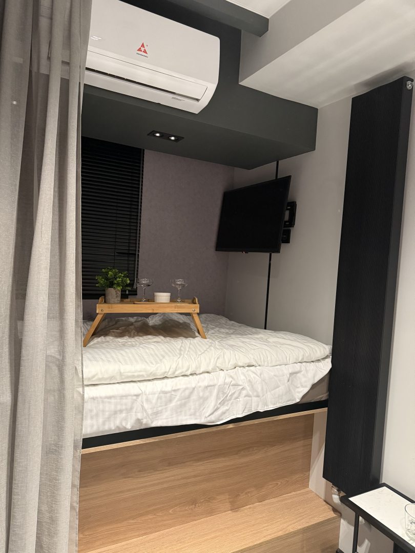 Классные апартаменты, уютные, чистые и стильные. Удобный матрас , но очень маленький, если Вы останавливаетесь в двоем и вы полные, будет не комфортно. Мы худенькие, но все же было тесновато. Очень жарили батареи , пришлось включать кондиционер, который в итоге утром потек , прямо на нас, матрас намок и до 12:00 мы ждали переселения. Спасибо , переселили в другой номер, в нем было получше, не так жарко . За 4 пары тапочек и 2 набора зубных принадлежностей удержали с залога. Об этом было написано , в отправленных документах, но мы не обратили на это внимание. Так что читайте внимательнее , все , что Вам отправляют. Это первые апартаменты, где за все эти моменты берут деньги, поэтому мы немного были в шоке.