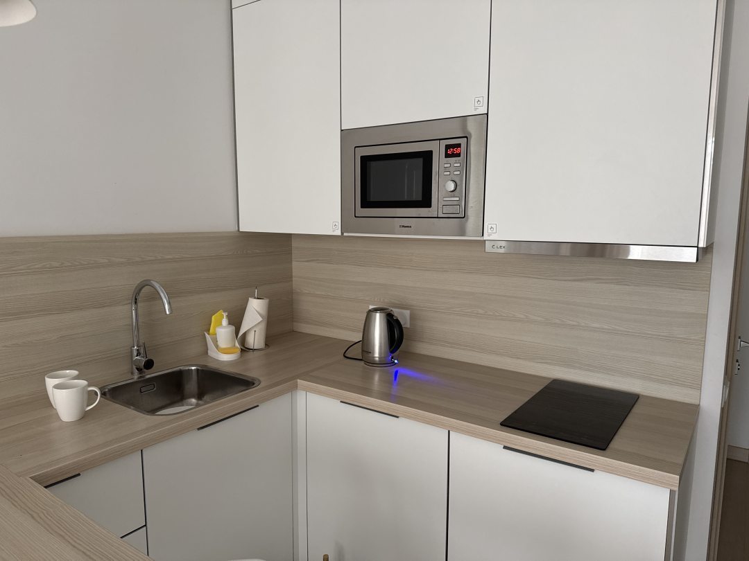 Комфортные апартаменты, оснащены новой современной мебелью и бытовой техникой . Есть все необходимое ( кухня оборудована индукционной электроплитой , эолодильник. Электрочайник , капсульная кофемашина , стиральная машина )новая современная сантехника .Идеальная чистота Комфортно работать и отдыхать .