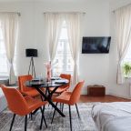 Это хороший вариант для компаний, поскольку в наличии удобные и вместительные спальные места, различная мебель для хранения вещей, телевидение, ванная комната со стиральной машиной.