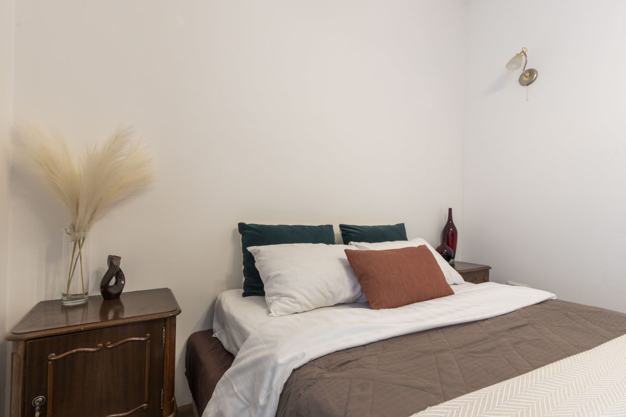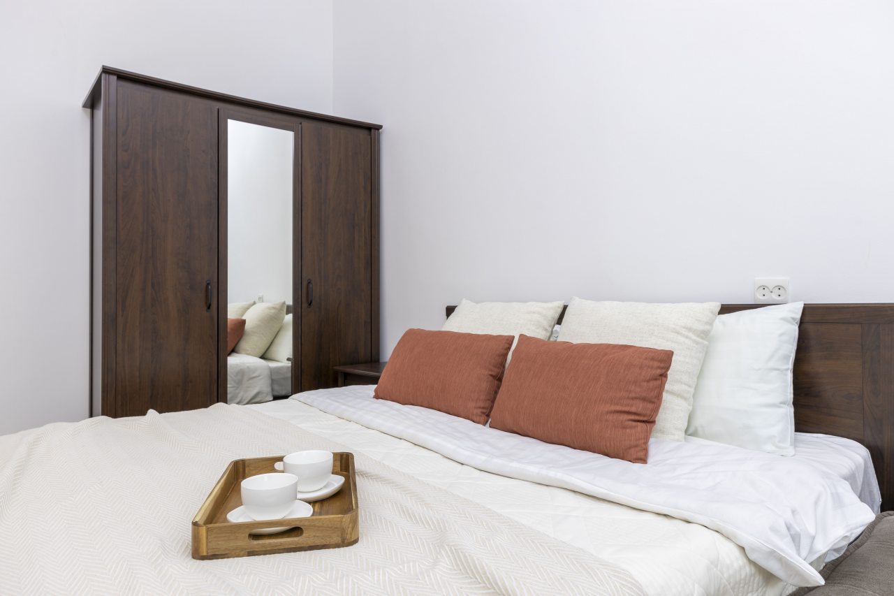 Внутри вас ожидают 4 удобные двуспальные кровати, 2 мягких дивана, шкаф с зеркалом, а также санузел с душем, ванной и стиральной машиной.