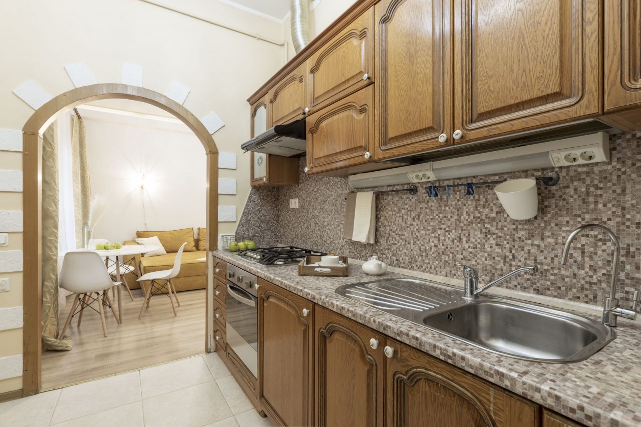 Для приготовления любимых блюд и напитков имеется кухня, которая оснащена плитой, СВЧ-печью, духовым шкафом, чайником и обеденной зоной.