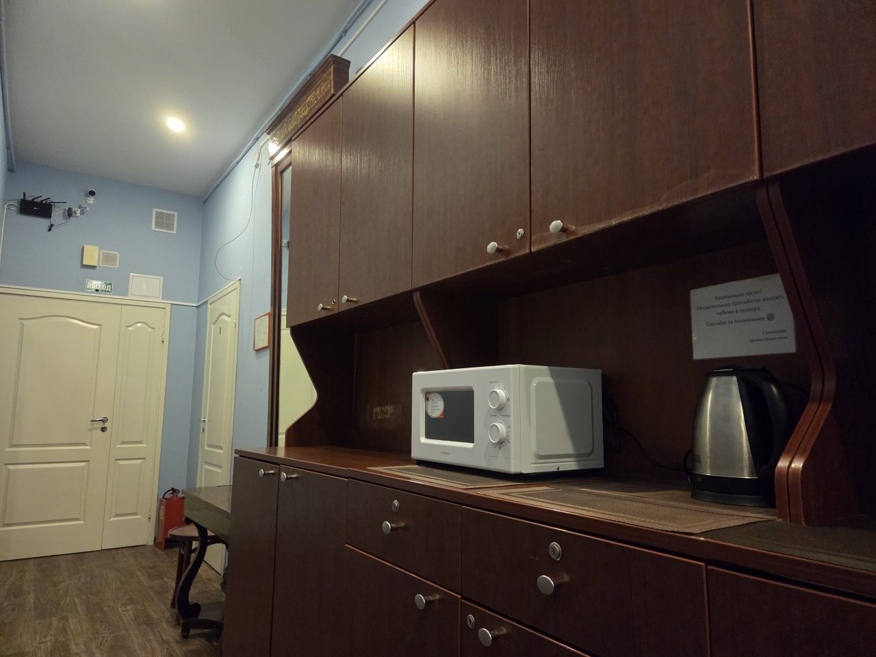 Для удобства организации перекуса предусмотрена общая кухня с СВЧ-печью, чайником и холодильником.