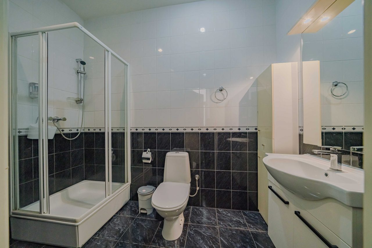 Предлагаются различные по вместимости варианты. В каждых имеется удобное спальное место, прикроватные лампы и тумбы, доступ к Wi-Fi, собственный санузел со всем необходимым. В распоряжении гостей — стиральная машина и гладильные принадлежности.