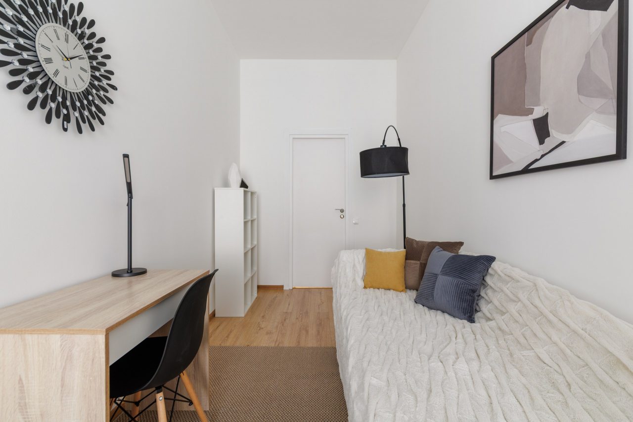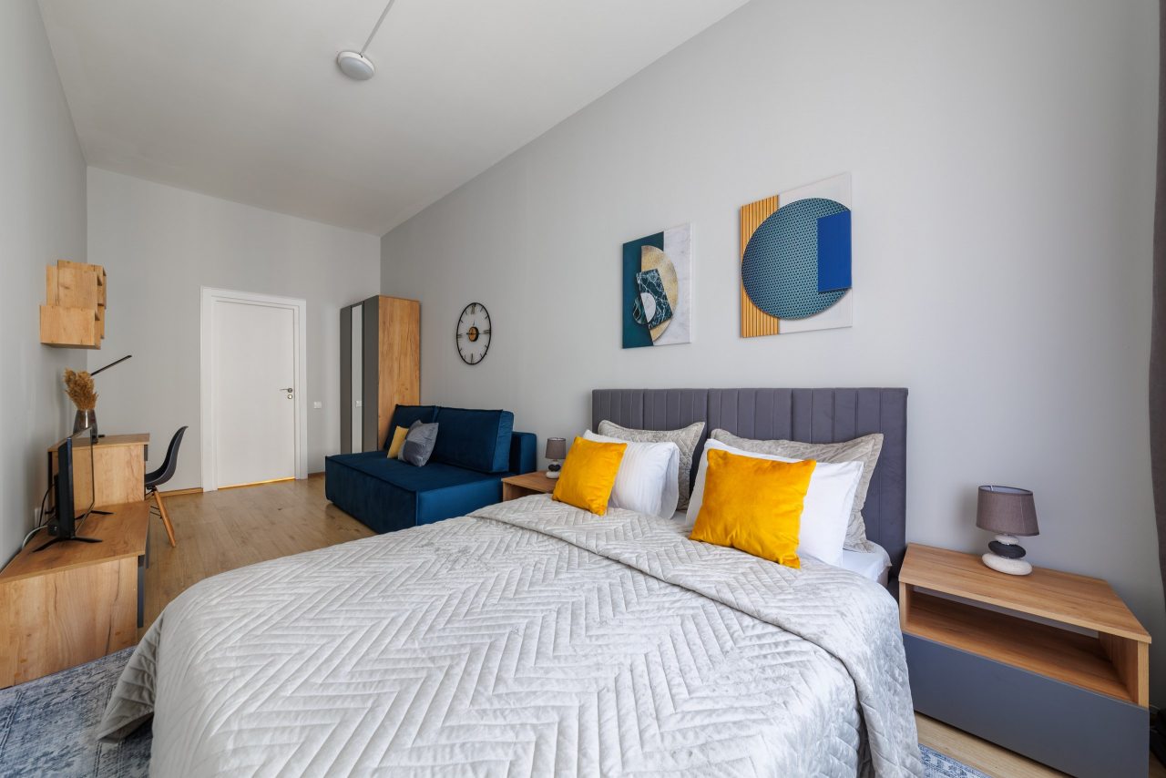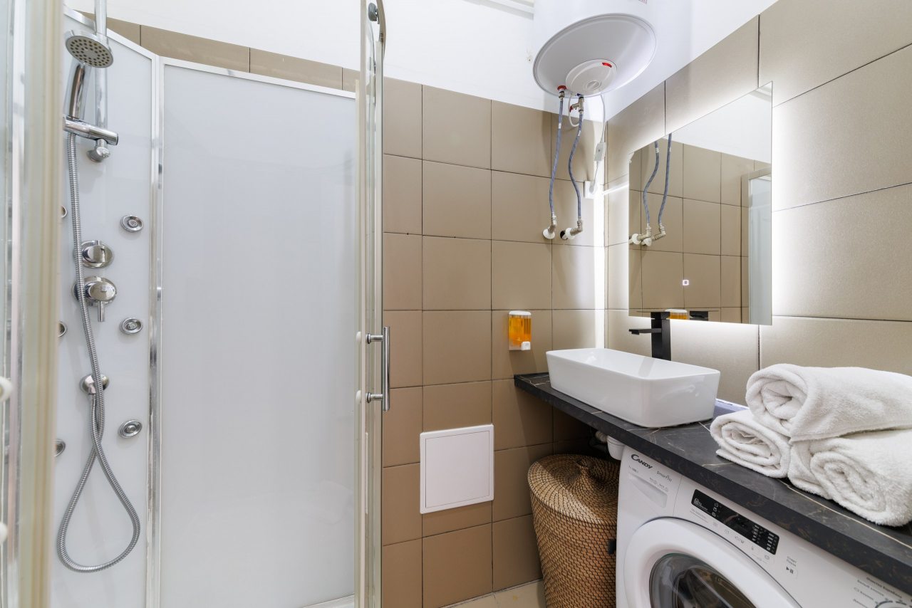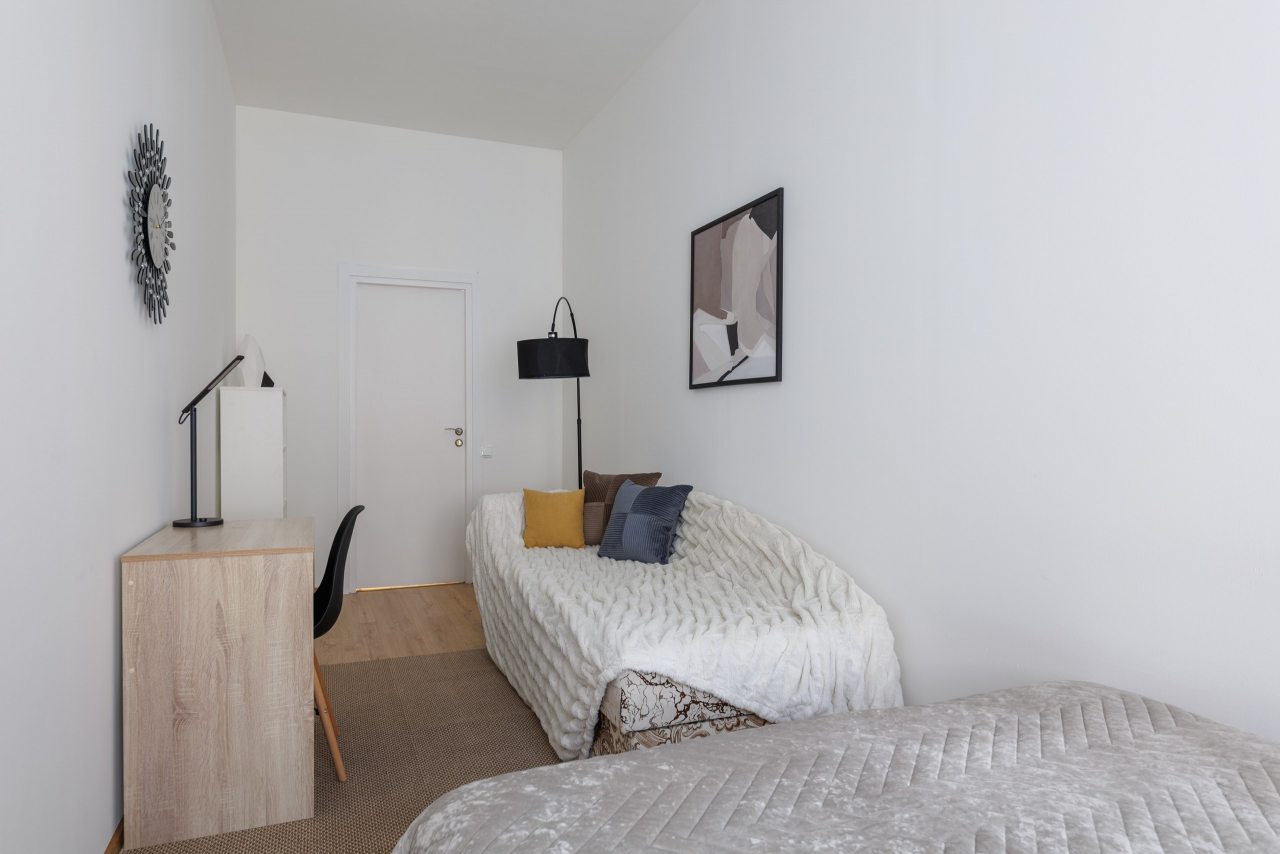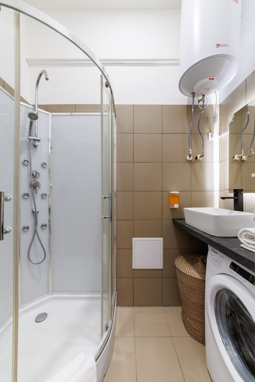 Данный вид размещения идеально подойдет для больших компаний, поскольку предусмотрено целых 16 спальных мест, среди которых две односпальные кровати, четыре двуспальные кровати и три диван-кровати. Вы также найдете все необходимое для комфортного проживания: от гладильных принадлежностей и набора постельного белья до двух телевизоров с кабельным телевидением и Wi-Fi. В ванной комнате вы найдете душевую кабину, стиральную машину и различные туалетные принадлежности.