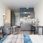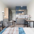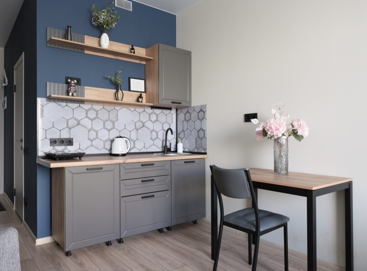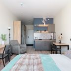 На мини-кухне, оборудованной чайником, плитой и уютной обеденной зоной, вы сможете в любое время порадовать себя горячим напитком или домашней едой. Рядом — различные кафе и пекарни.