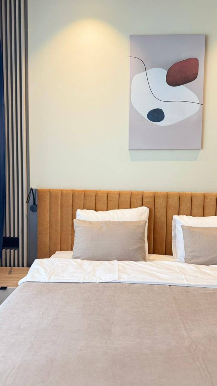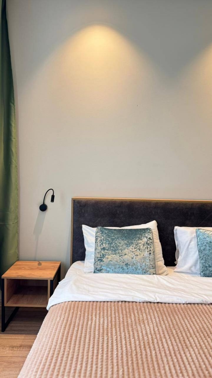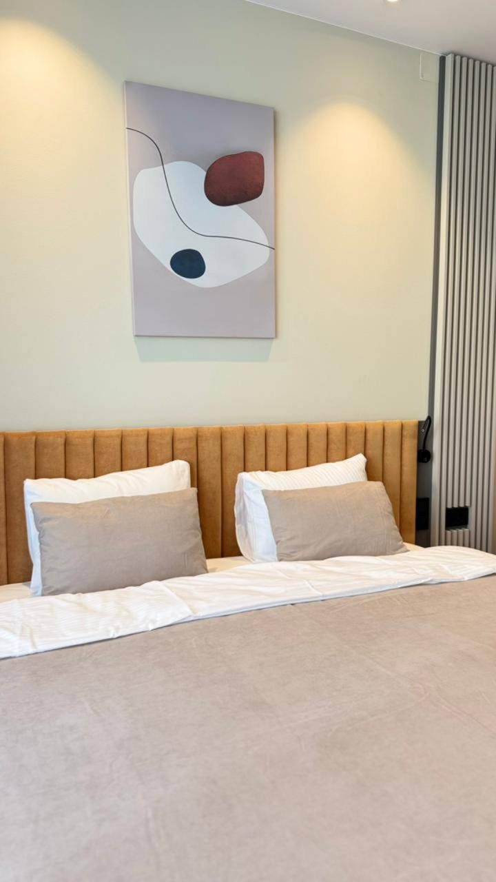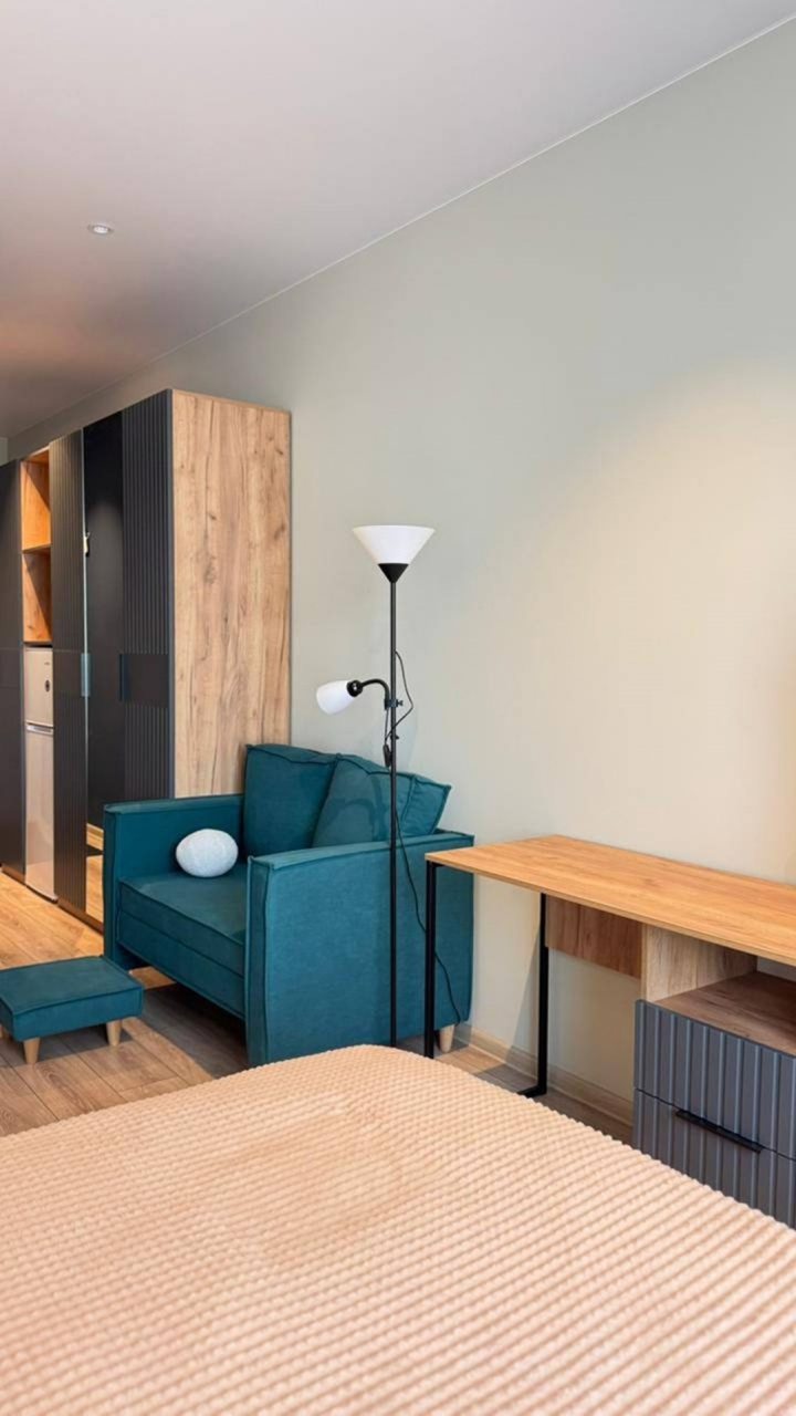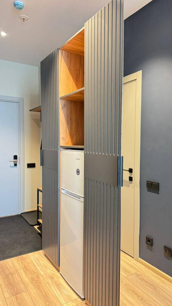 Уютный номер, есть всё необходимое для проживания ( чистое постельное бельё, утюг, сушилка для белья, гладильная доска, фен, большой холодильник, микроволновка, плита, посуда, чайник)