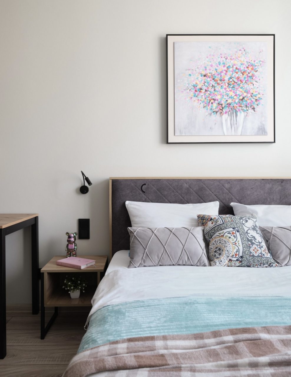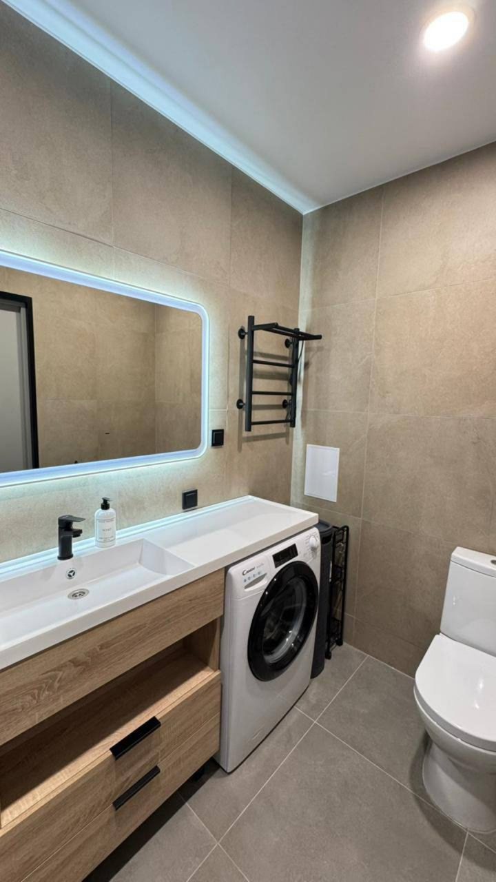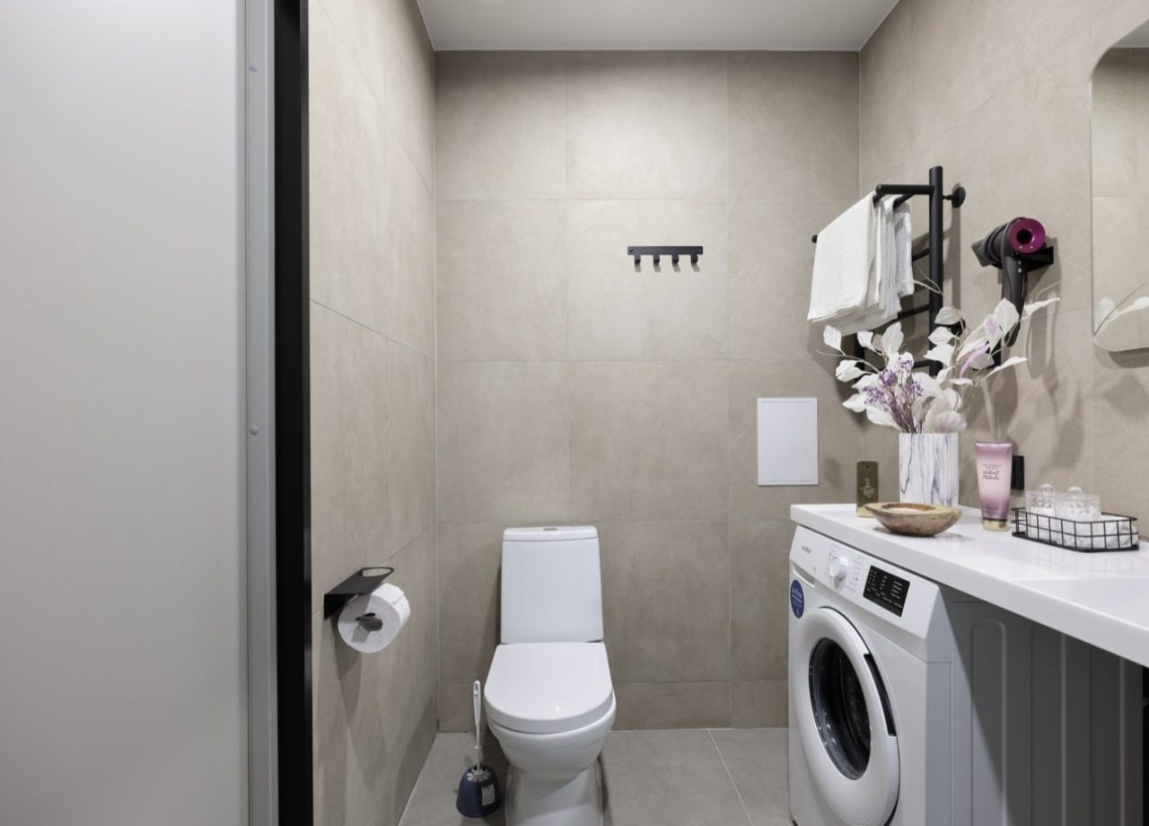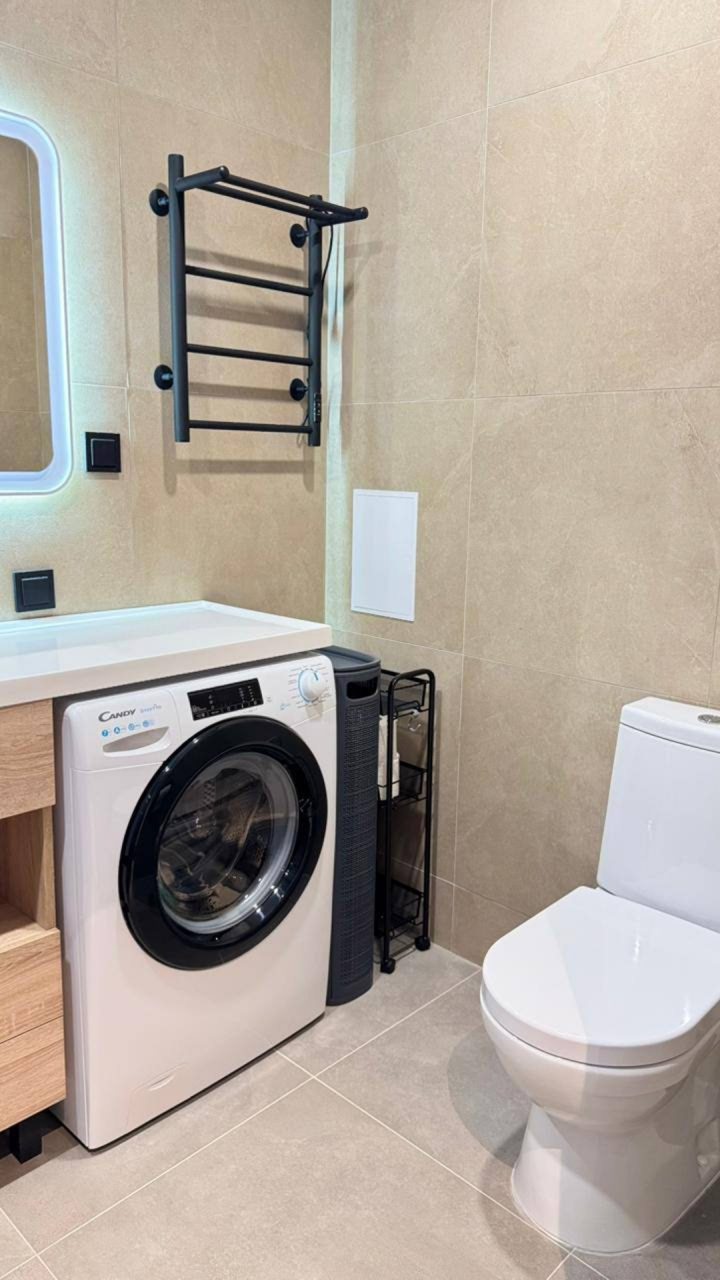 Уютный номер, есть всё необходимое для проживания ( чистое постельное бельё, утюг, сушилка для белья, гладильная доска, фен, большой холодильник, микроволновка, плита, посуда, чайник)