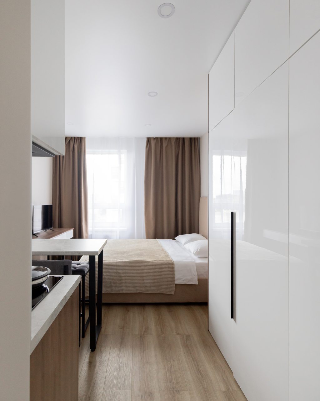 Очень стильные апартаменты со всем необходимым. Удобные и комфортные, есть все, чтобы отдохнуть, заняться рабочими задачами и приготовить себе обед. Самое то, чтобы становиться на пару дней. Имеется стиральная машинка. Из окна красивый вид. Поблизости различные кафе, магазины и банки.