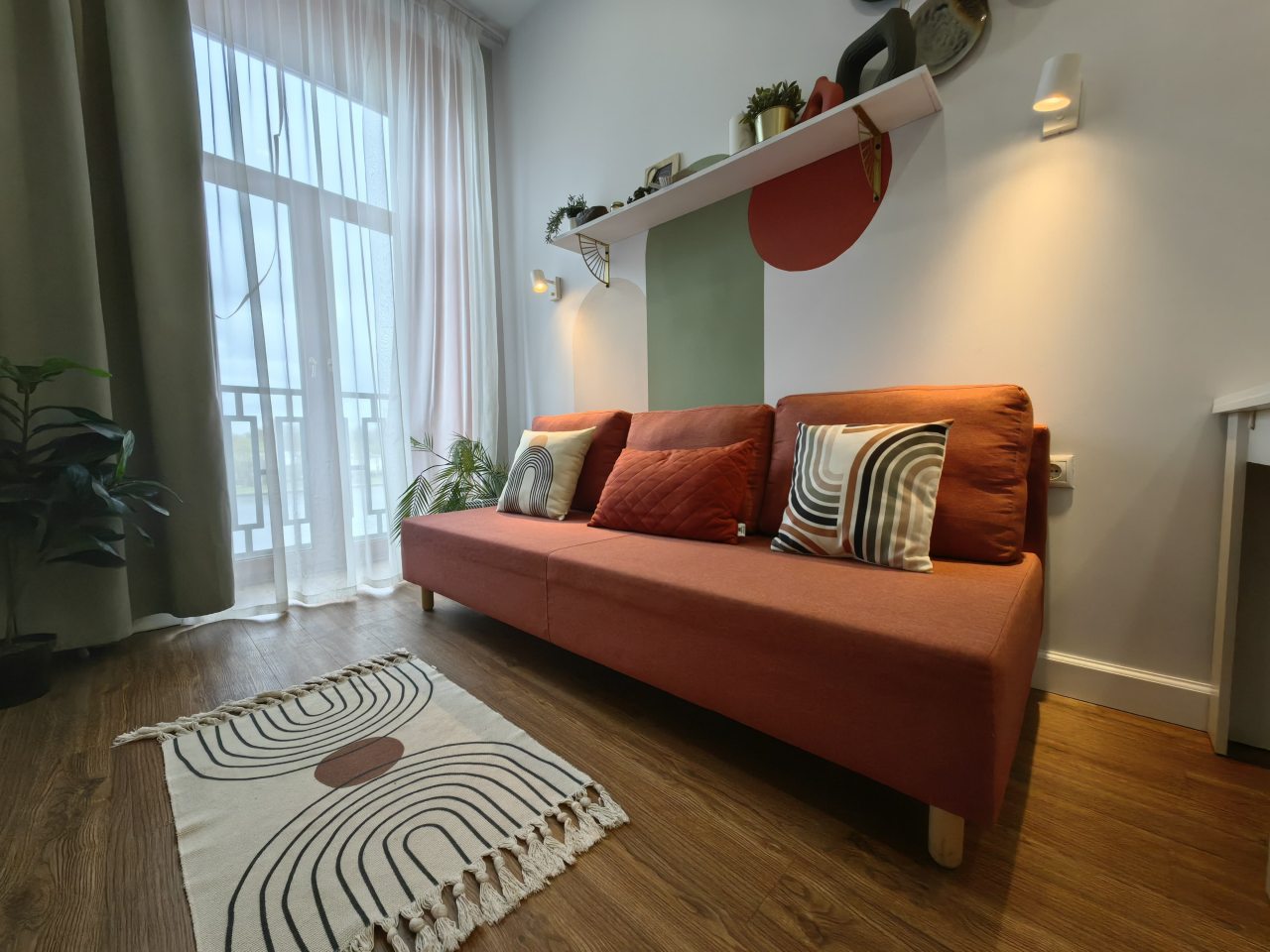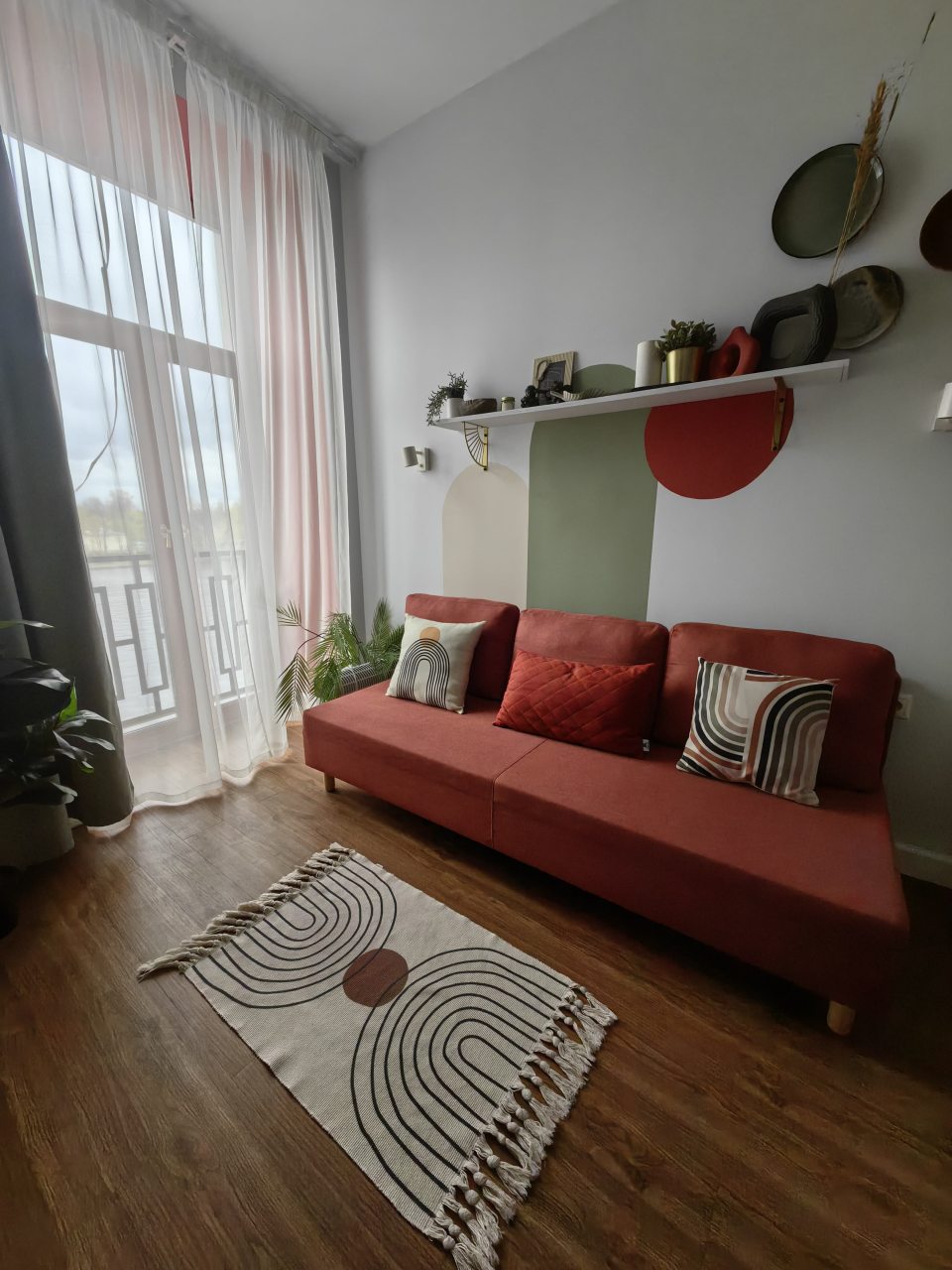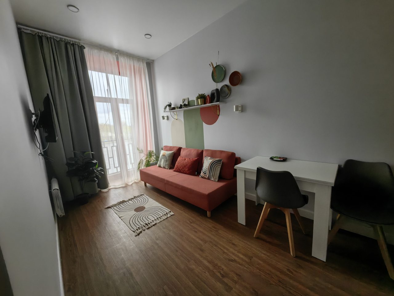 Для долгосрочного и краткосрочного проживания предлагаются уютные апартаменты, оснащенные удобными спальными местами, письменным столом, телевизором. Благодаря стильным элементам декора, таким, как цветы в горшках, затемненные шторы и зеркало, царит атмосфера уюта и спокойствия. Санузел оснащен душем и стиральной машиной. Из панорамных окон открывается красивый вид на побережье и реку.