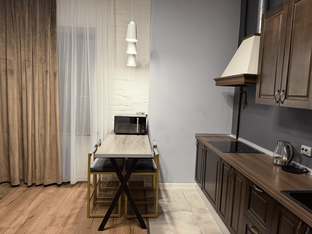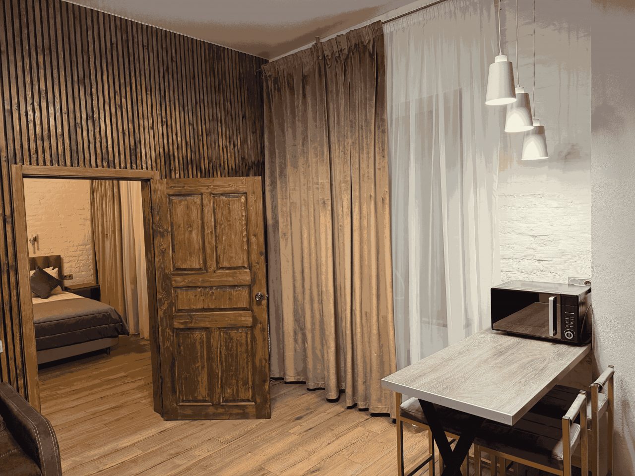 Очень хорошие апартаменты с очень выгодным расположением по отношению к центру города. Для нас было важно, что они находятся близко к Московскому вокзалу, так как мы приезжали именно туда. Внутри было все, что может понадобиться для комфортного отдыха и проживания. Спальные места удобные. Бытовая техника и мебель в хорошем состоянии были. Уборка была проведена отлично.