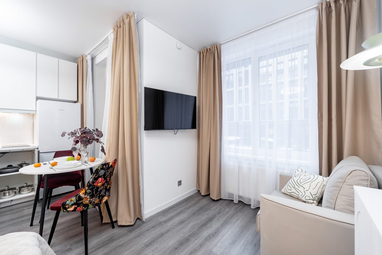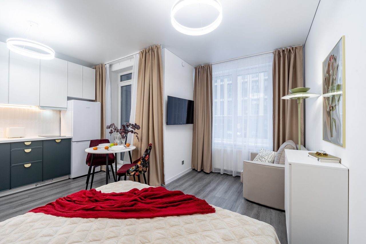 Апартаменты «Атмосферная студия АРТиШОК» располагаются в Санкт-Петербурге, неподалеку от набережной Макарова.