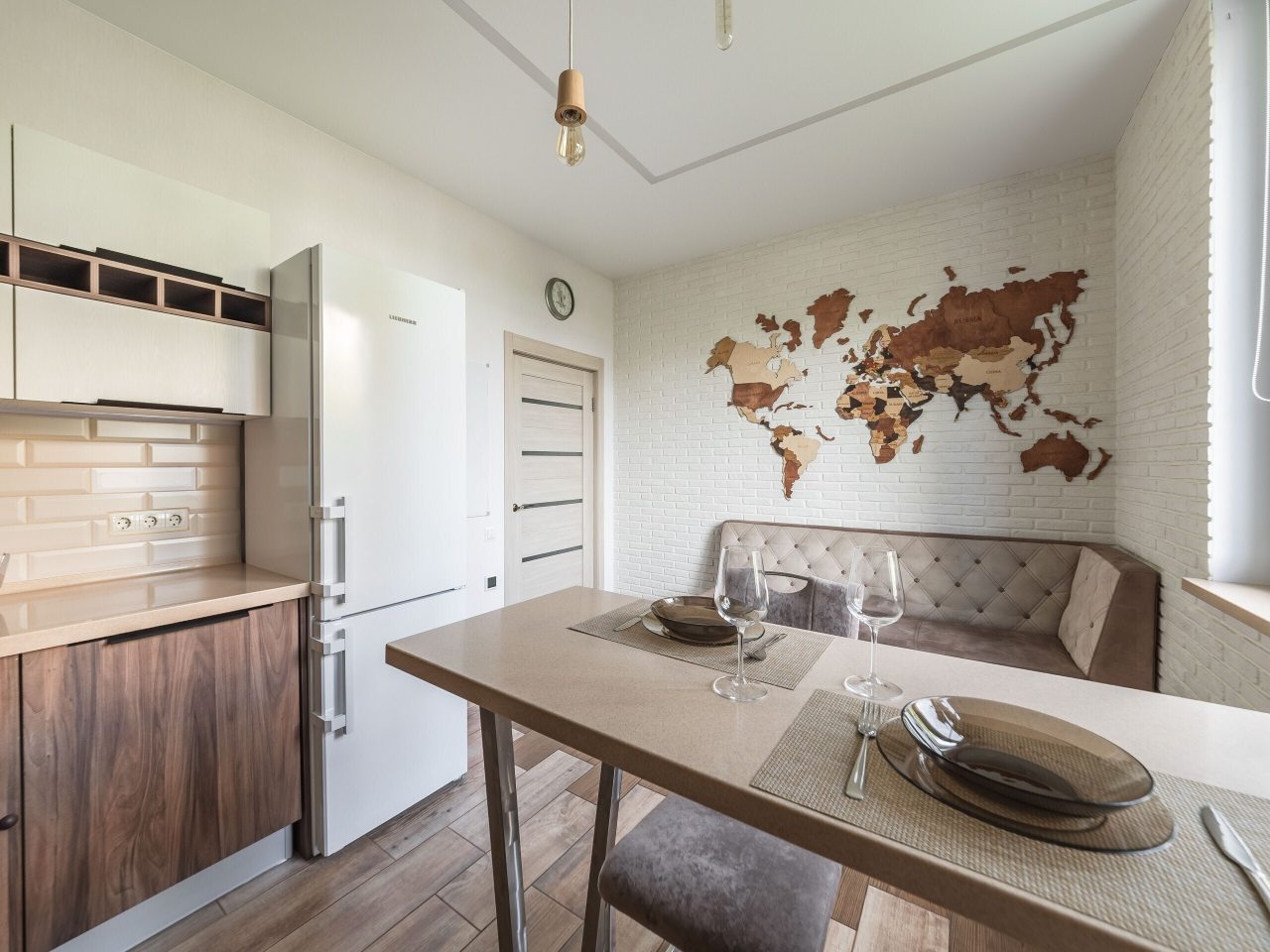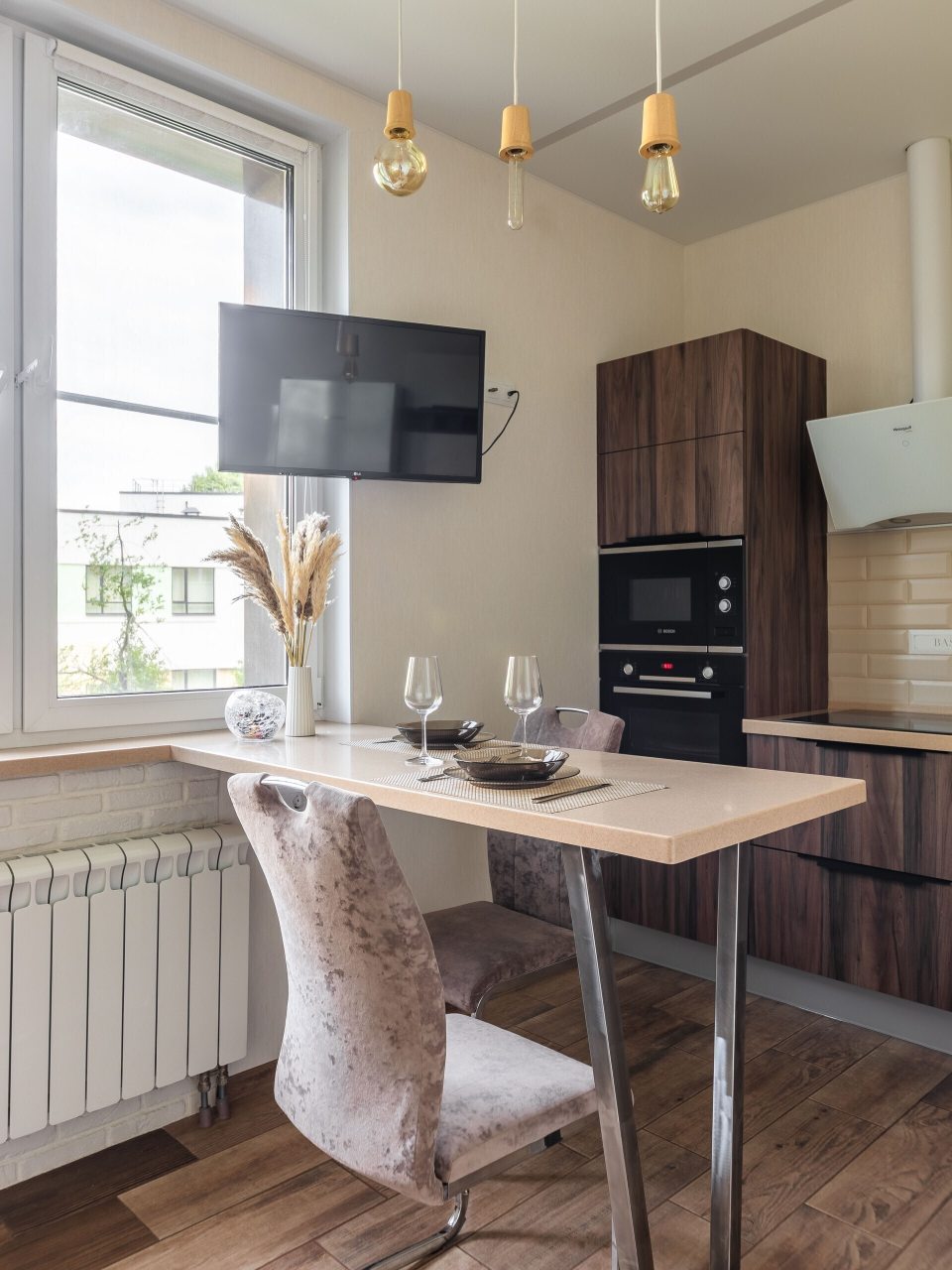 Очень уютная и комфортабельная квартира, мы проживали в ней почти неделю, успели привыкнуть как к своей. Комнаты просторные, светлые. Стильная кухня с телевизором и хорошей вытяжкой. Мы остались довольны!
