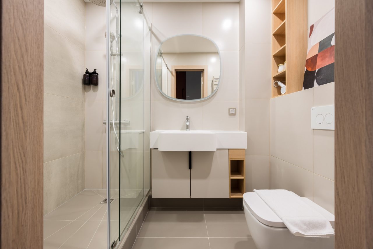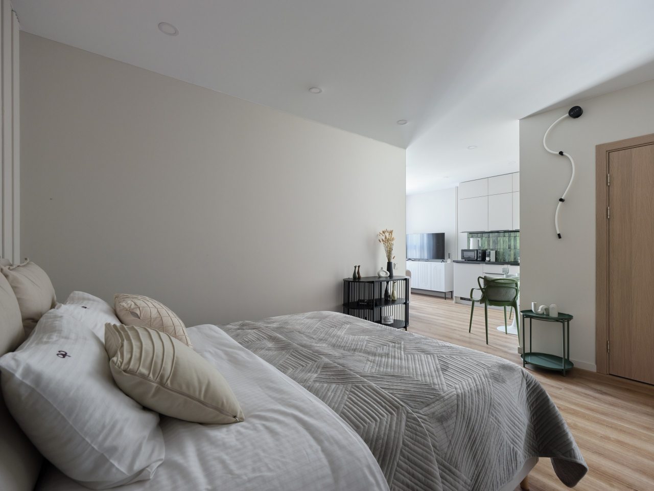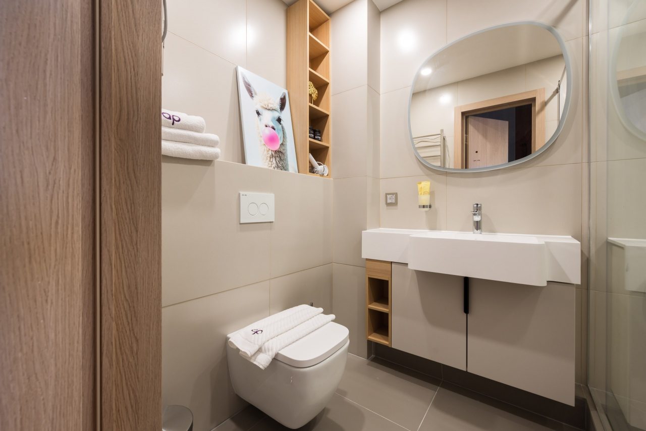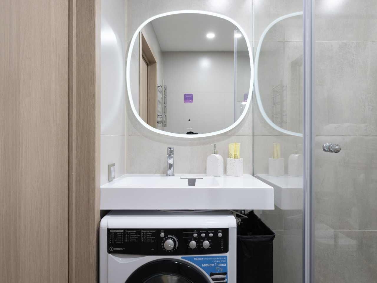 В апартаментах есть удобная двуспальная кровать, собственная ванная комната, стиральная машина, телевизор, Wi-Fi.